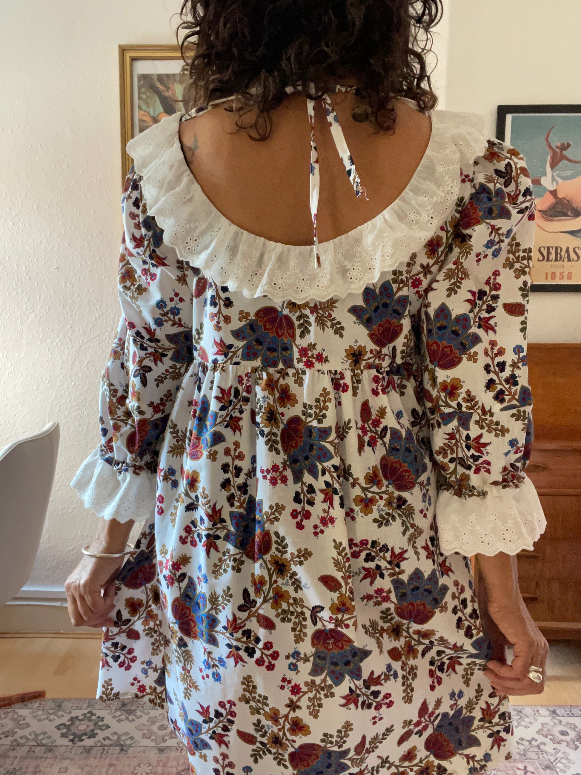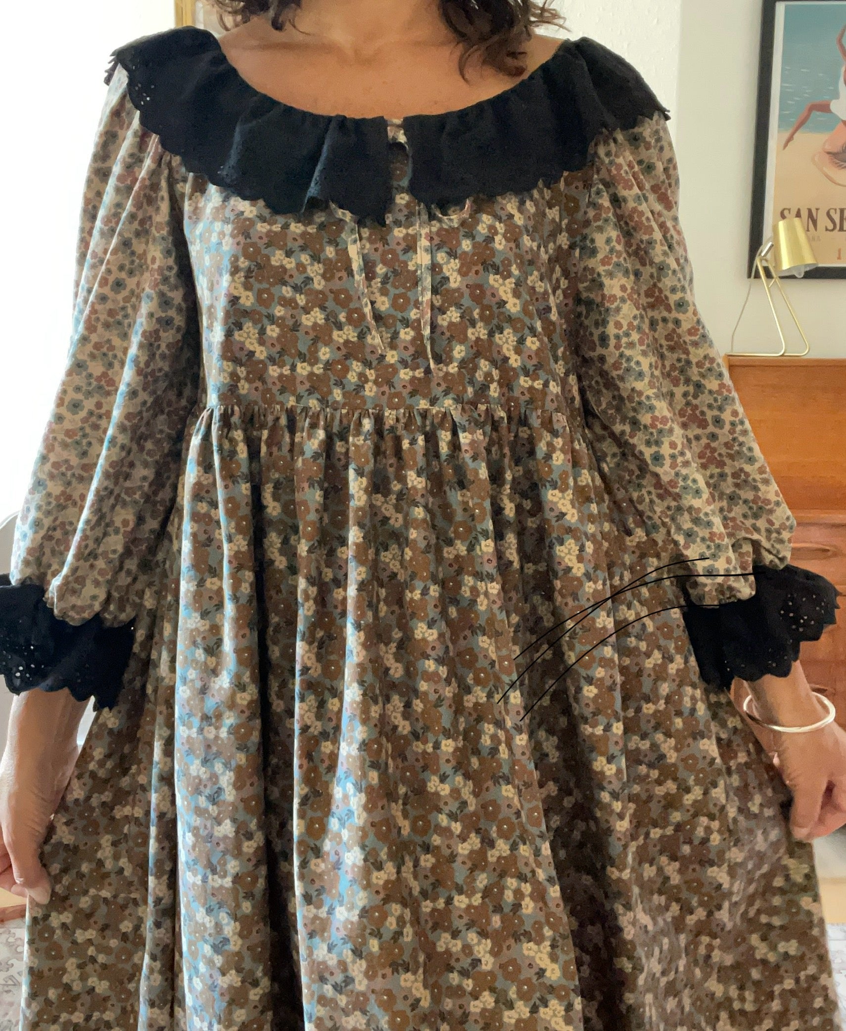 All fabrics are sourced by us and are mainly preloved or vintage as it's important to us to keep Lofty Frocks as sustainable as possible and not to create a negative impact on landfill.