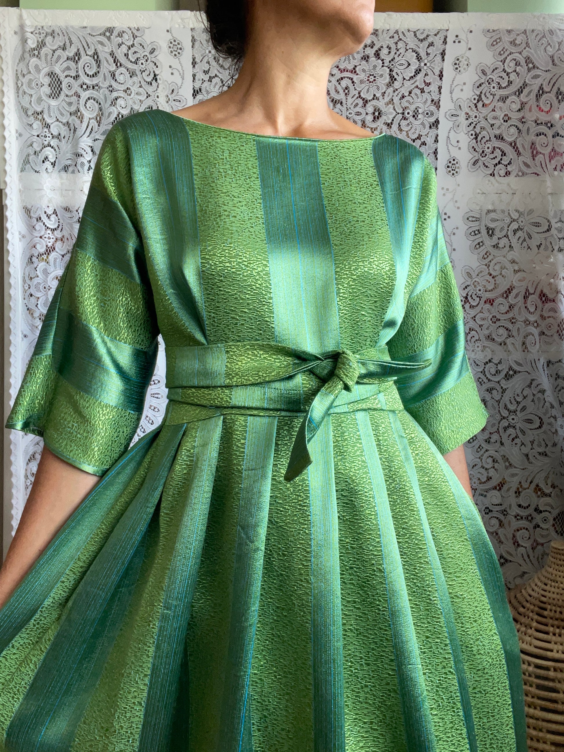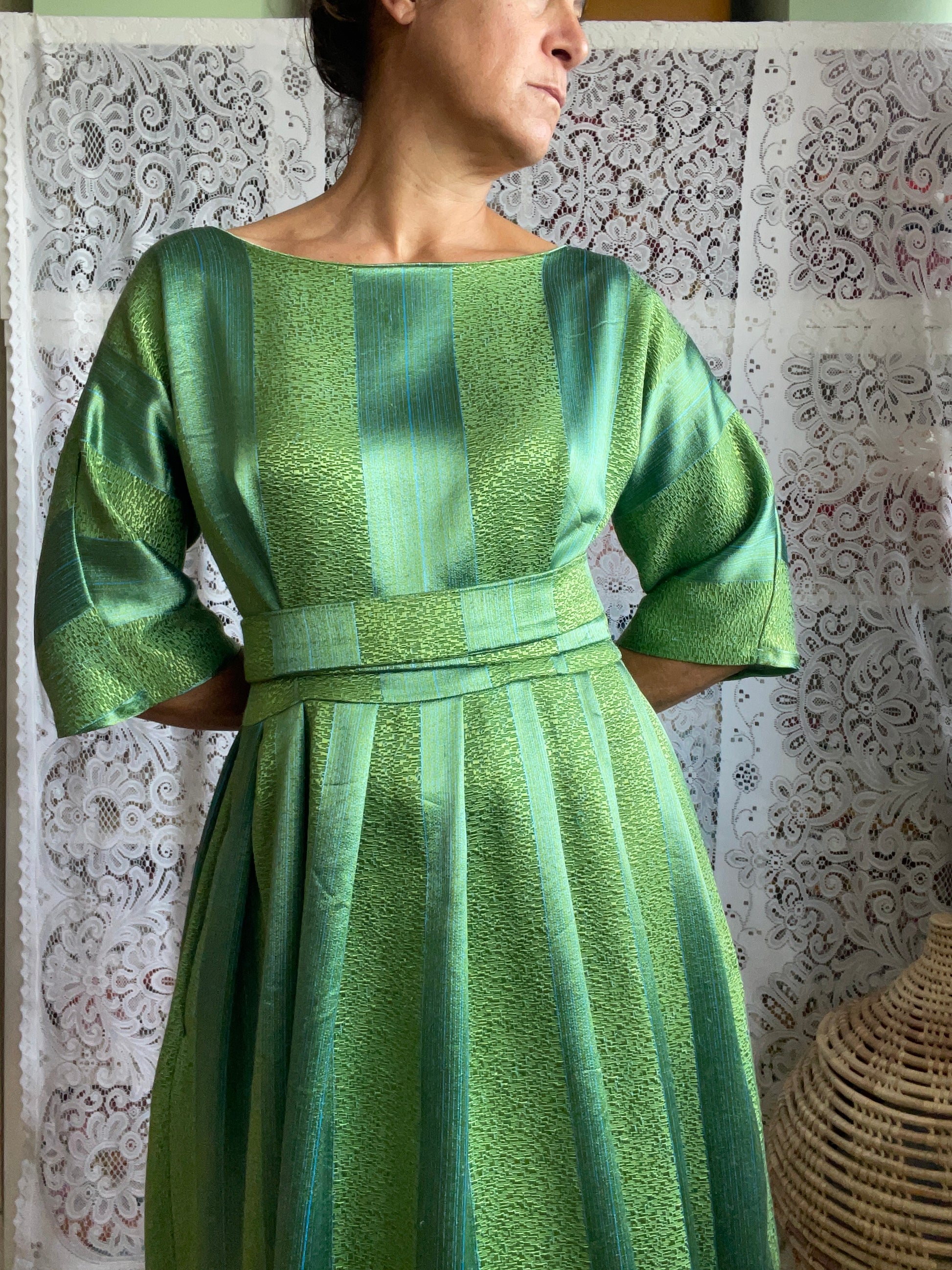 We do also occasionally buy deadstock and end-of-line items and sometimes new but only in small quantities (enough for one or two dresses).
