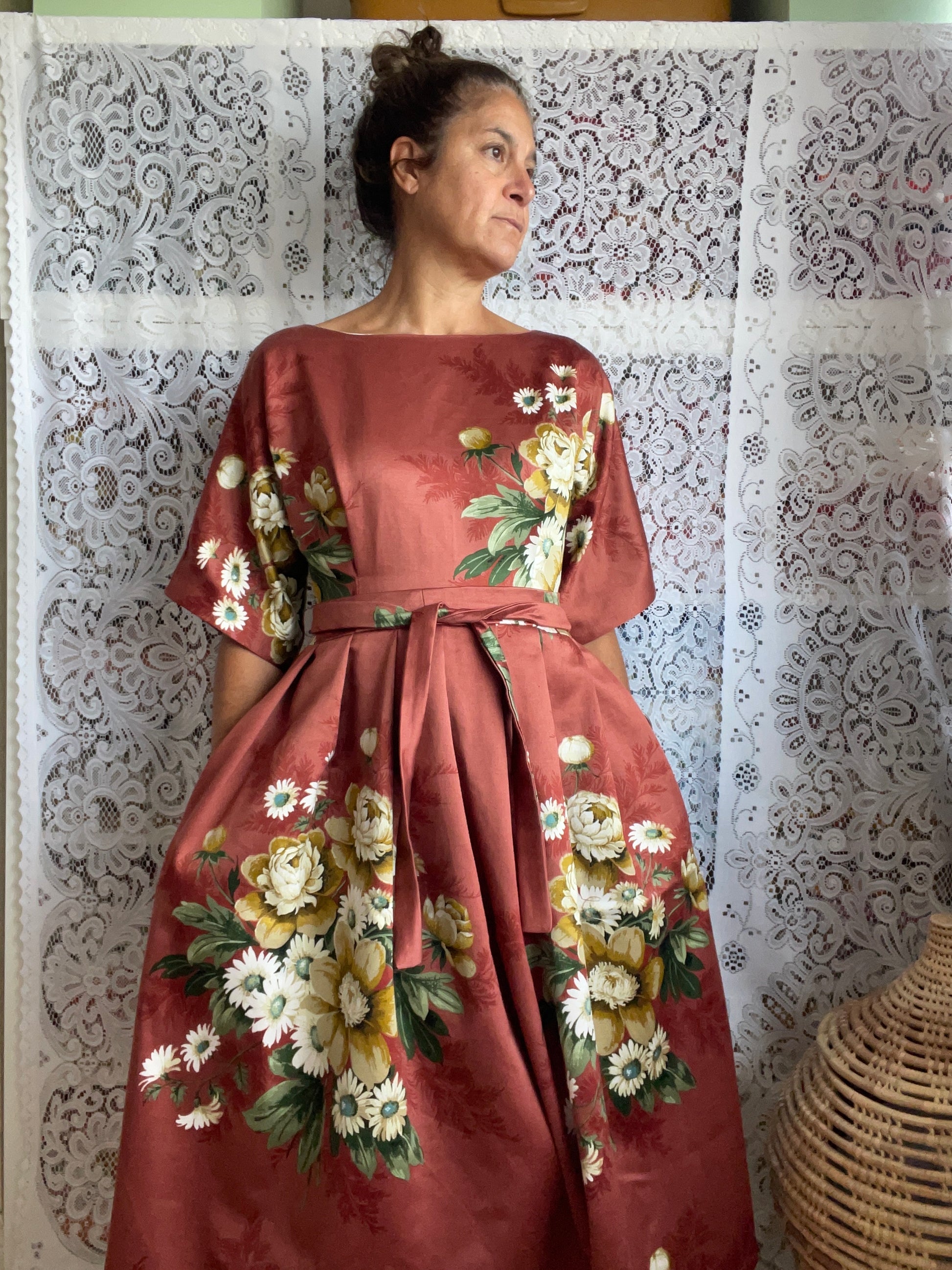 All fabrics are sourced by us and are mainly preloved or vintage as it's important to us to keep Lofty Frocks as sustainable as possible and not to create a negative impact on landfill.