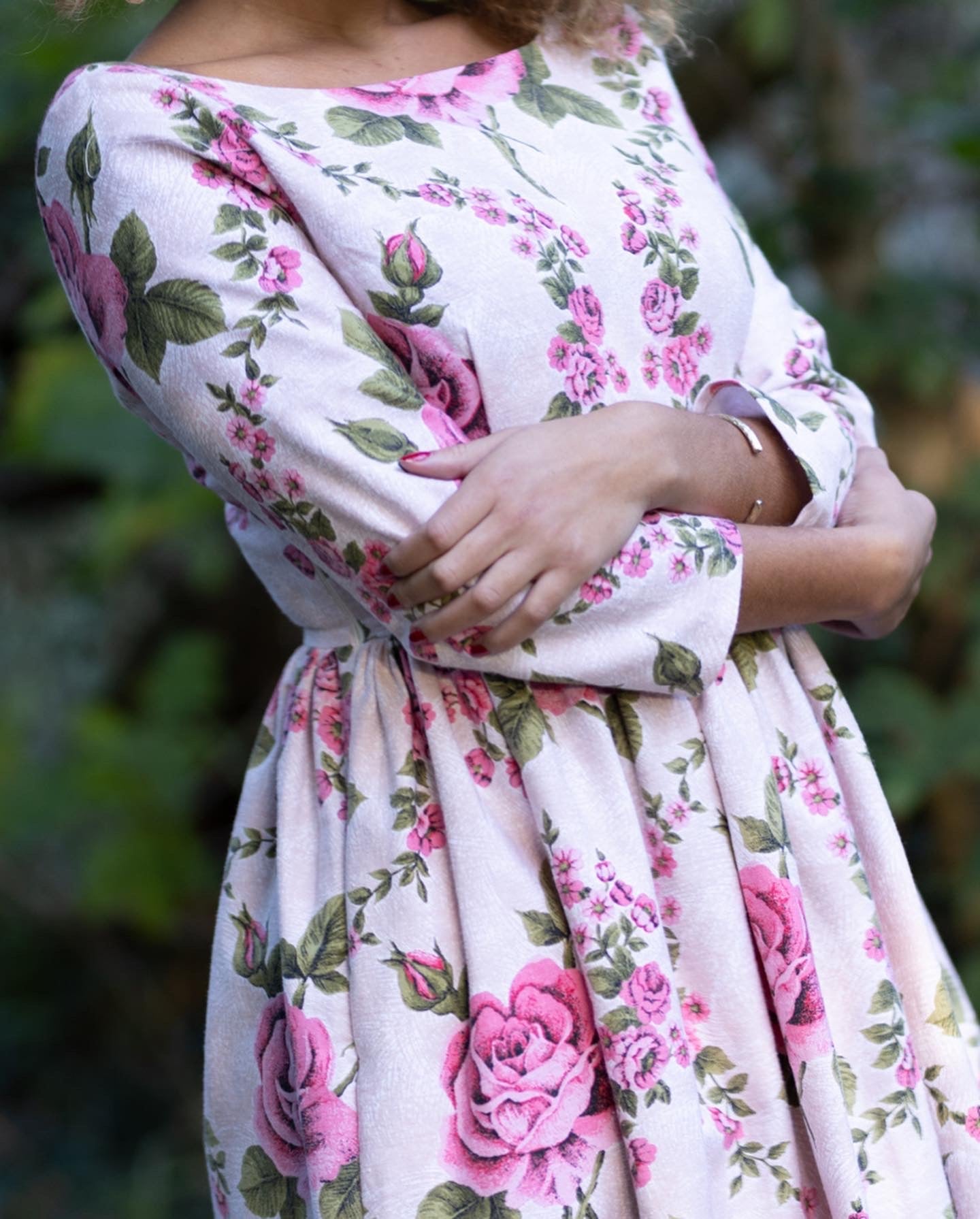 All fabrics are sourced by us and are mainly preloved or vintage as it's important to us to keep Lofty Frocks as sustainable as possible and not to create a negative impact on landfill.