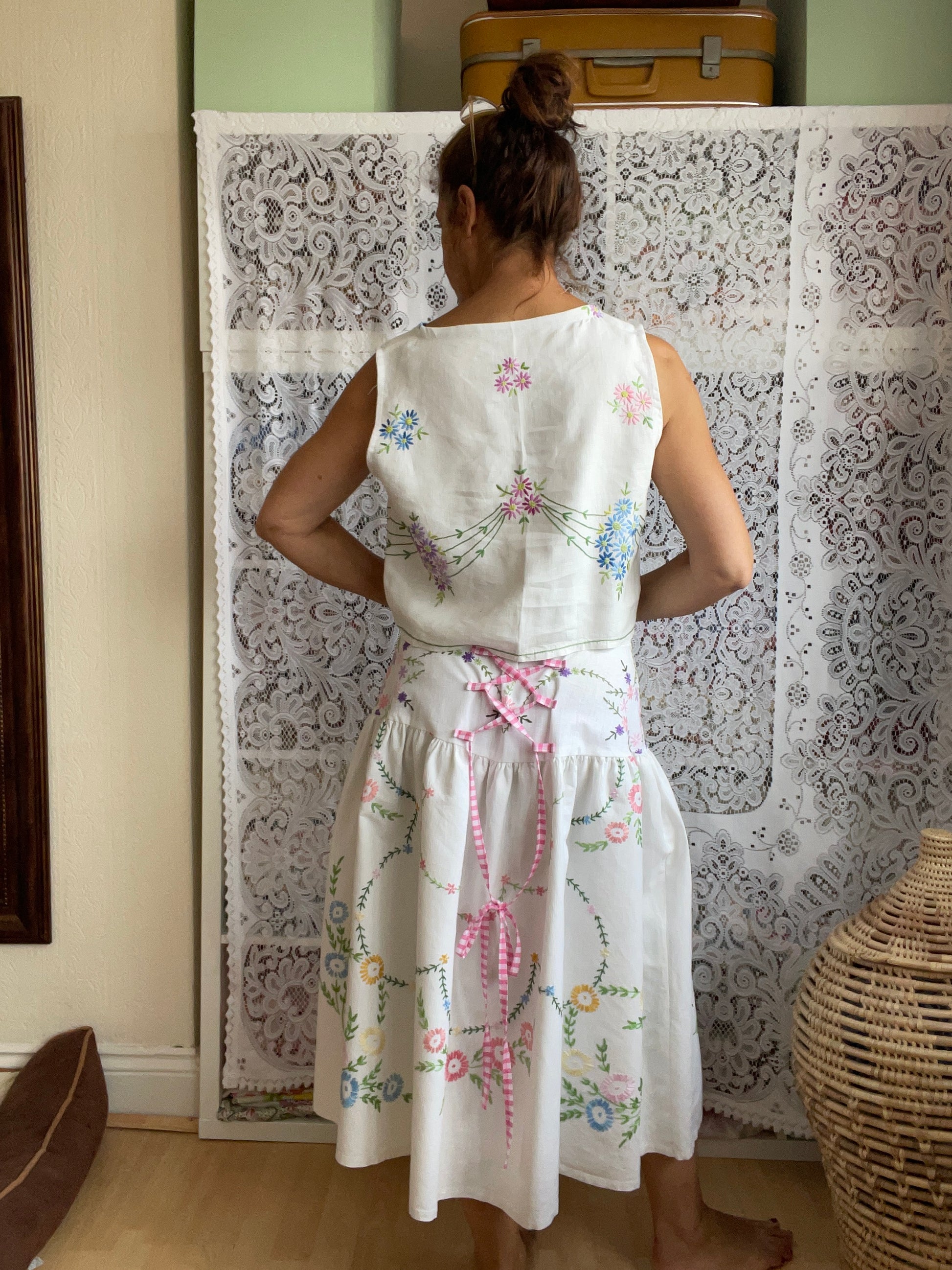 Made from vintage table cloths