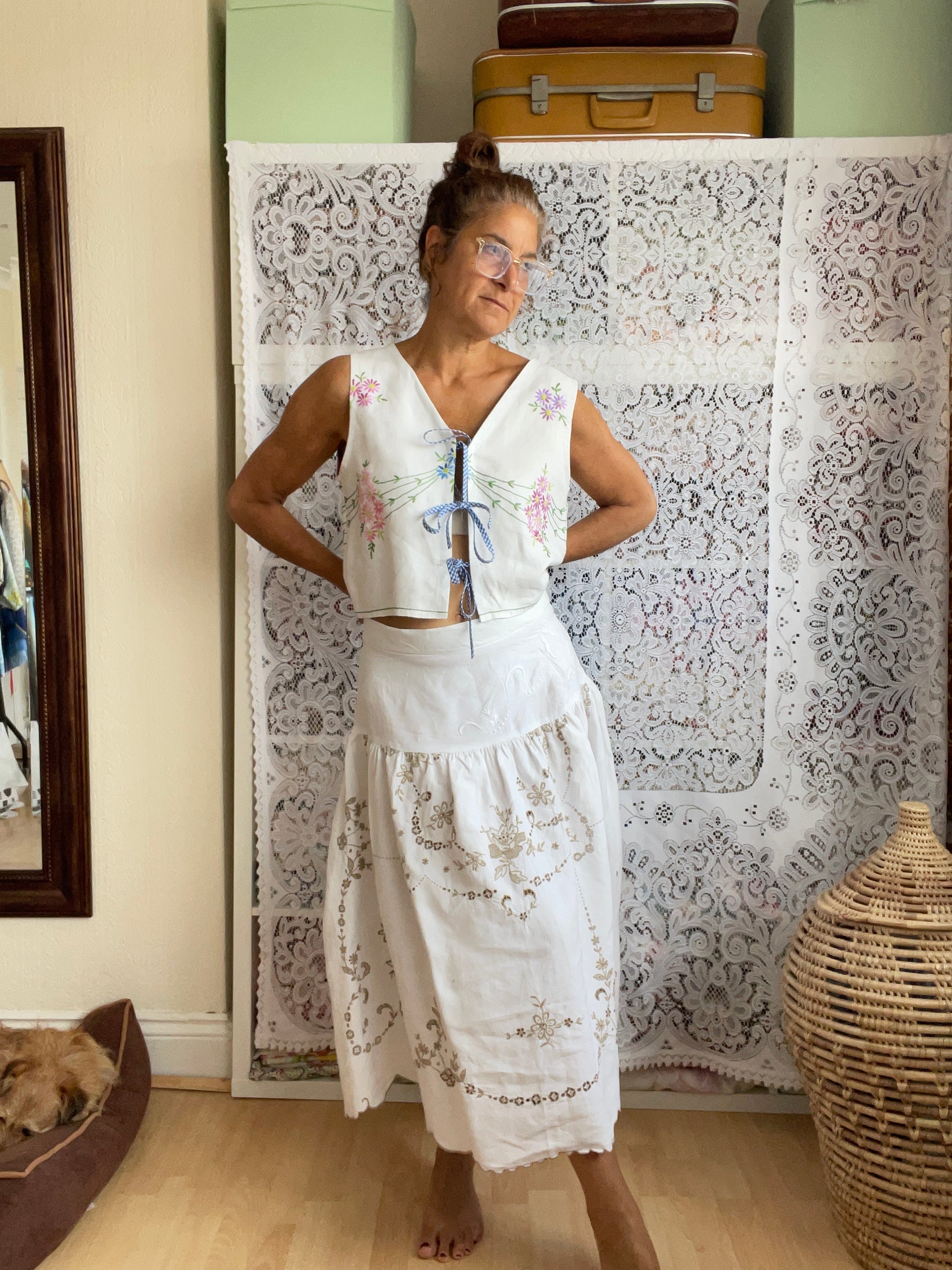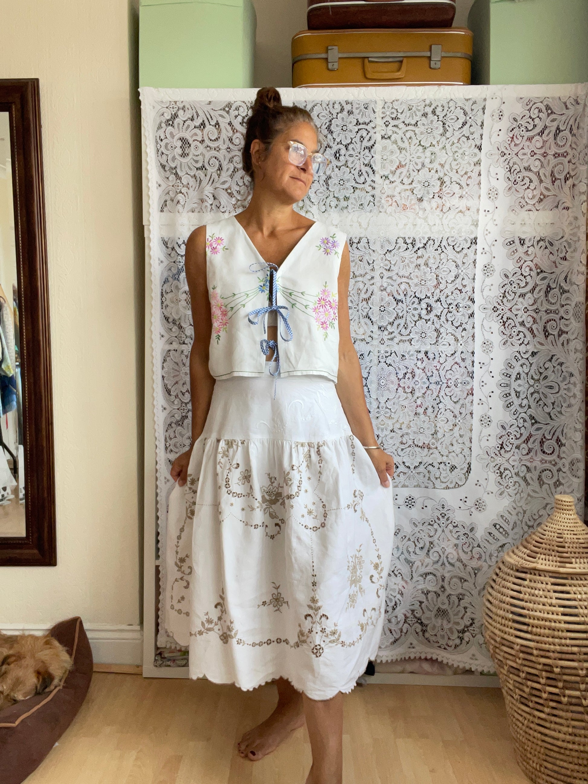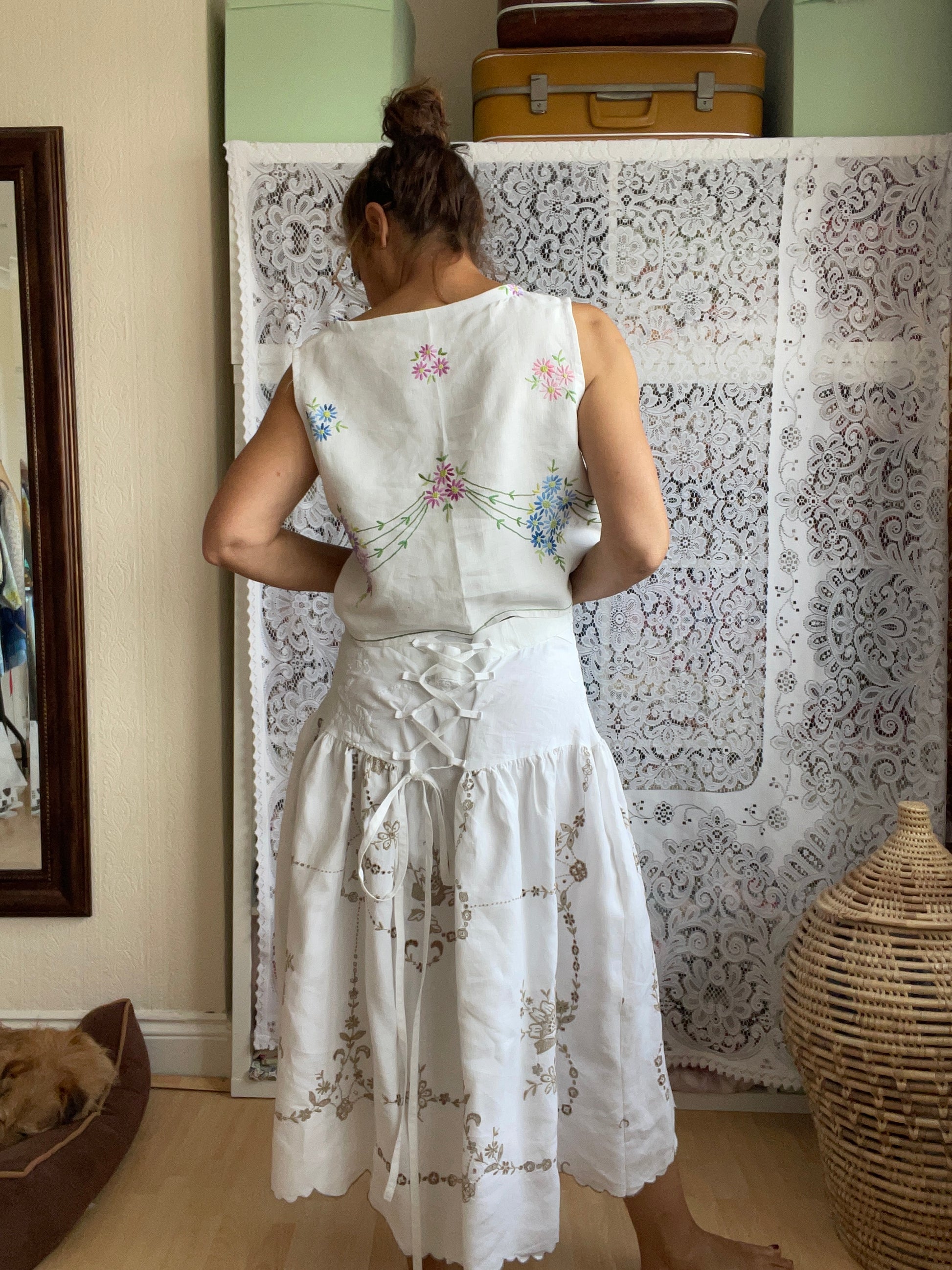 Made from vintage table cloths
