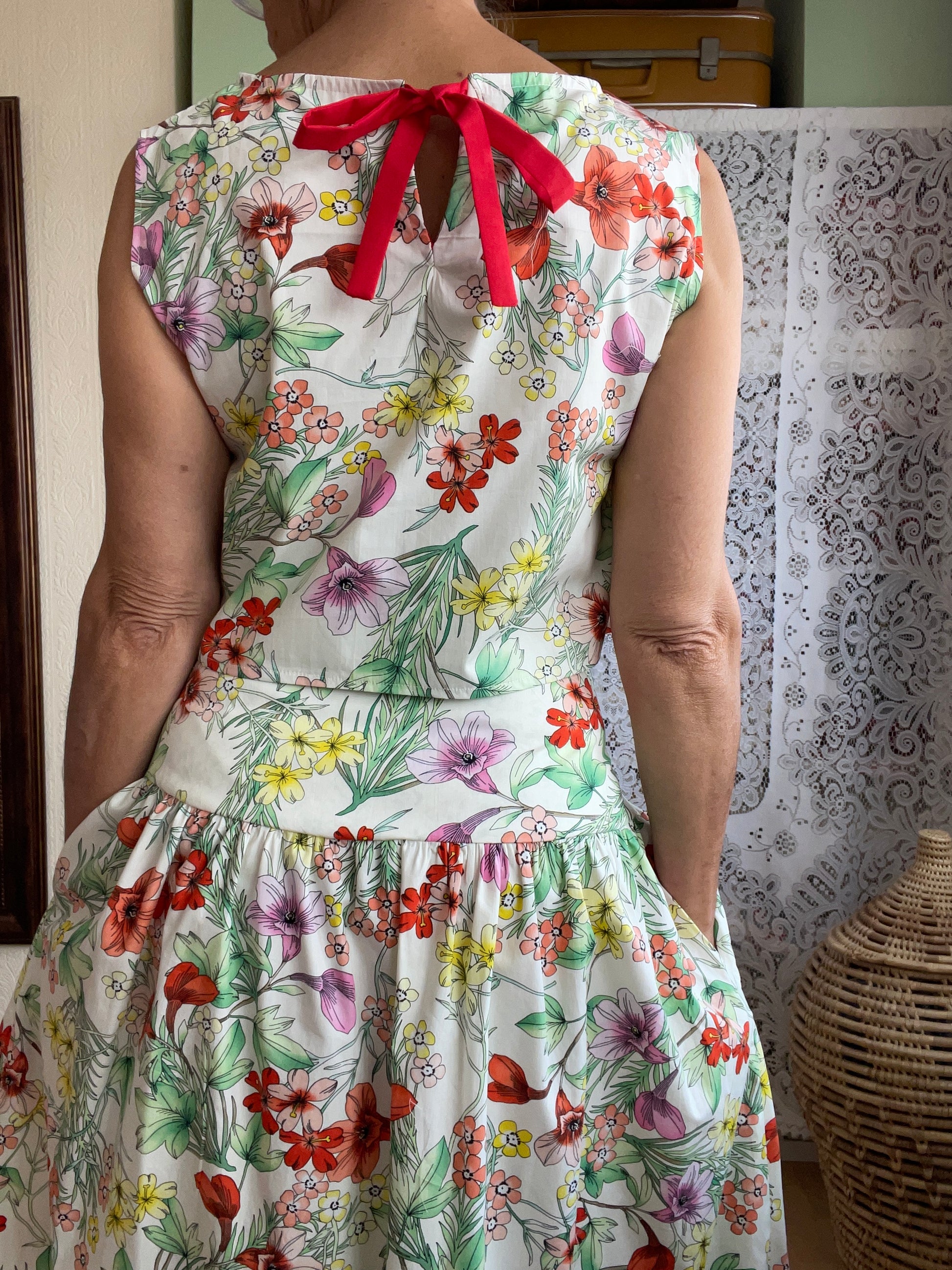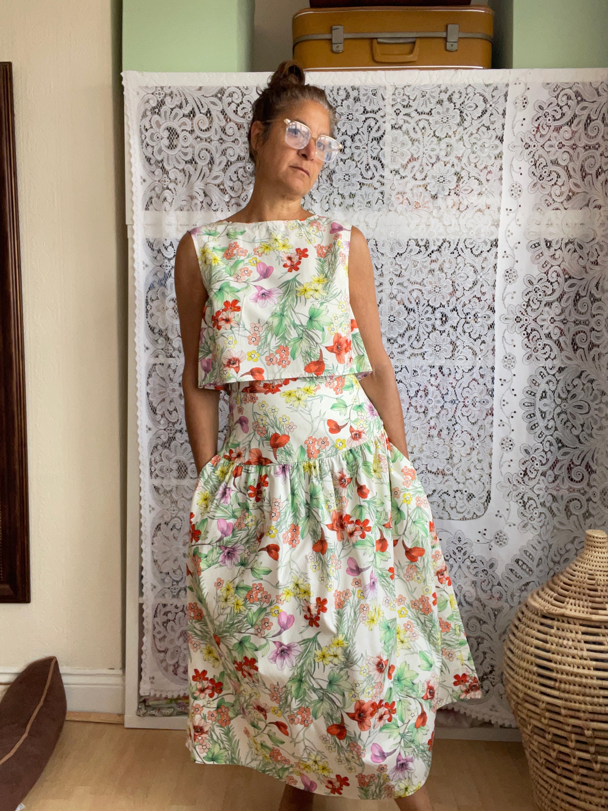 All fabrics are sourced by us and are mainly preloved or vintage as it's important to us to keep Lofty Frocks as sustainable as possible and not to create a negative impact on landfill.