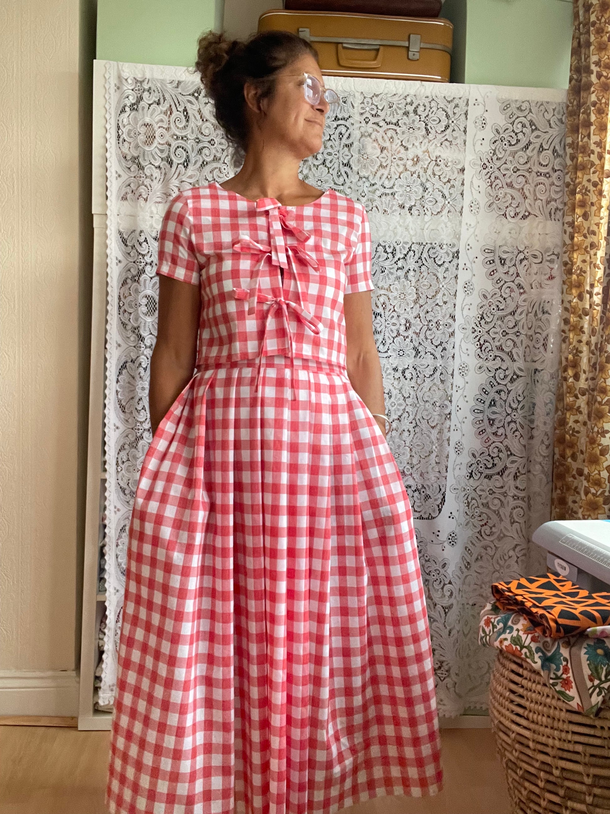 All fabrics are sourced by us and are mainly preloved or vintage as it's important to us to keep Lofty Frocks as sustainable as possible and not to create a negative impact on landfill.