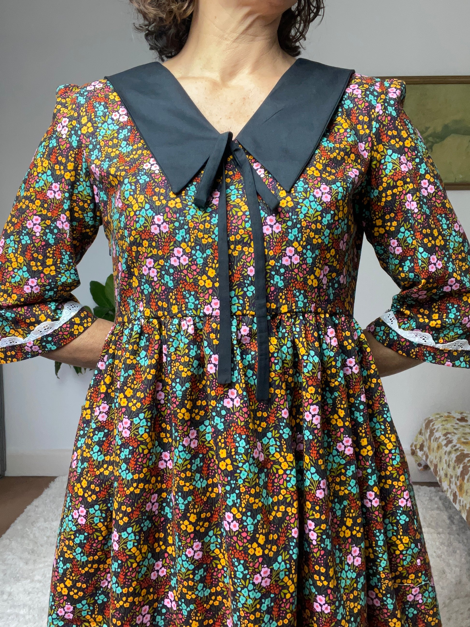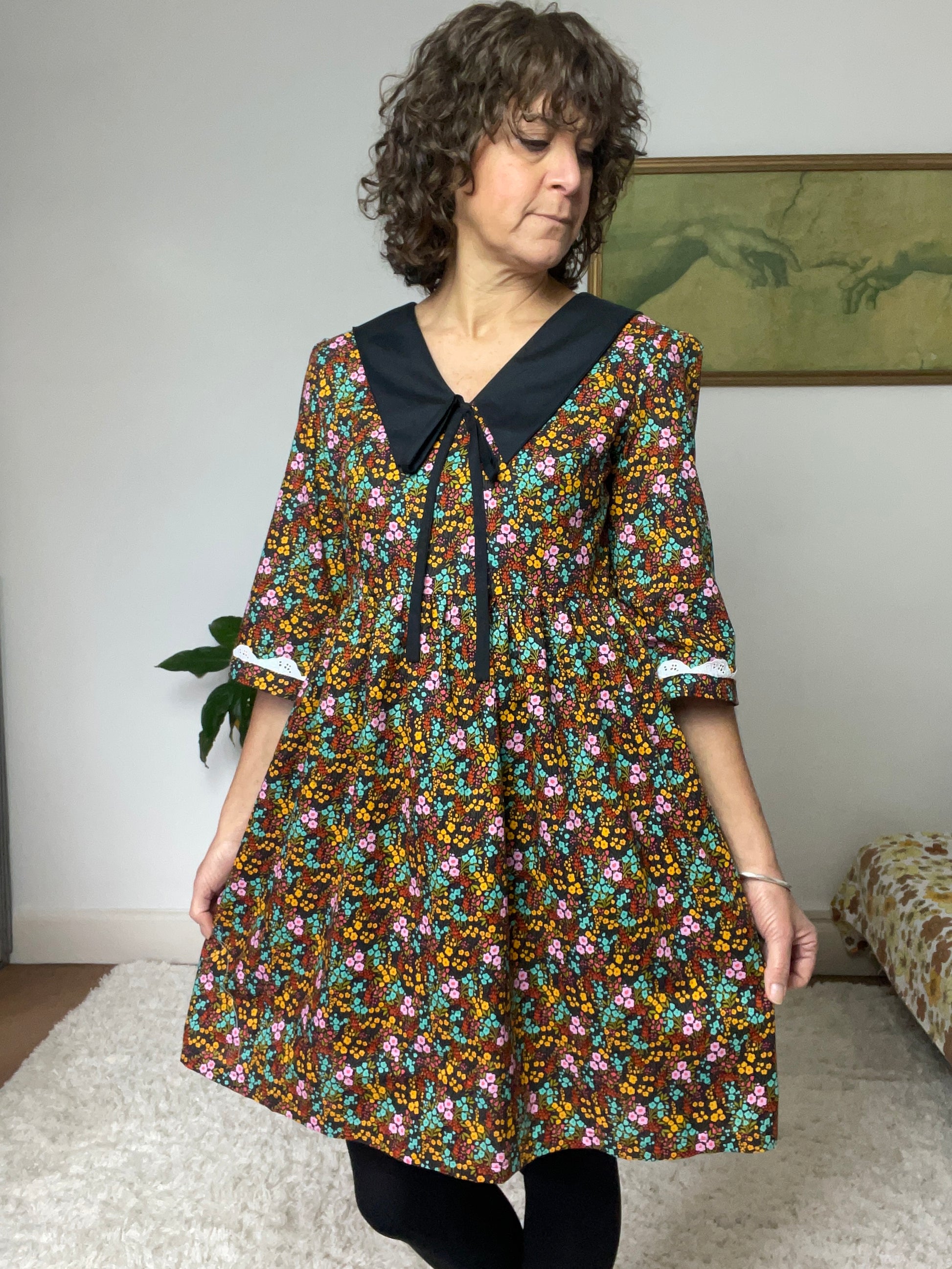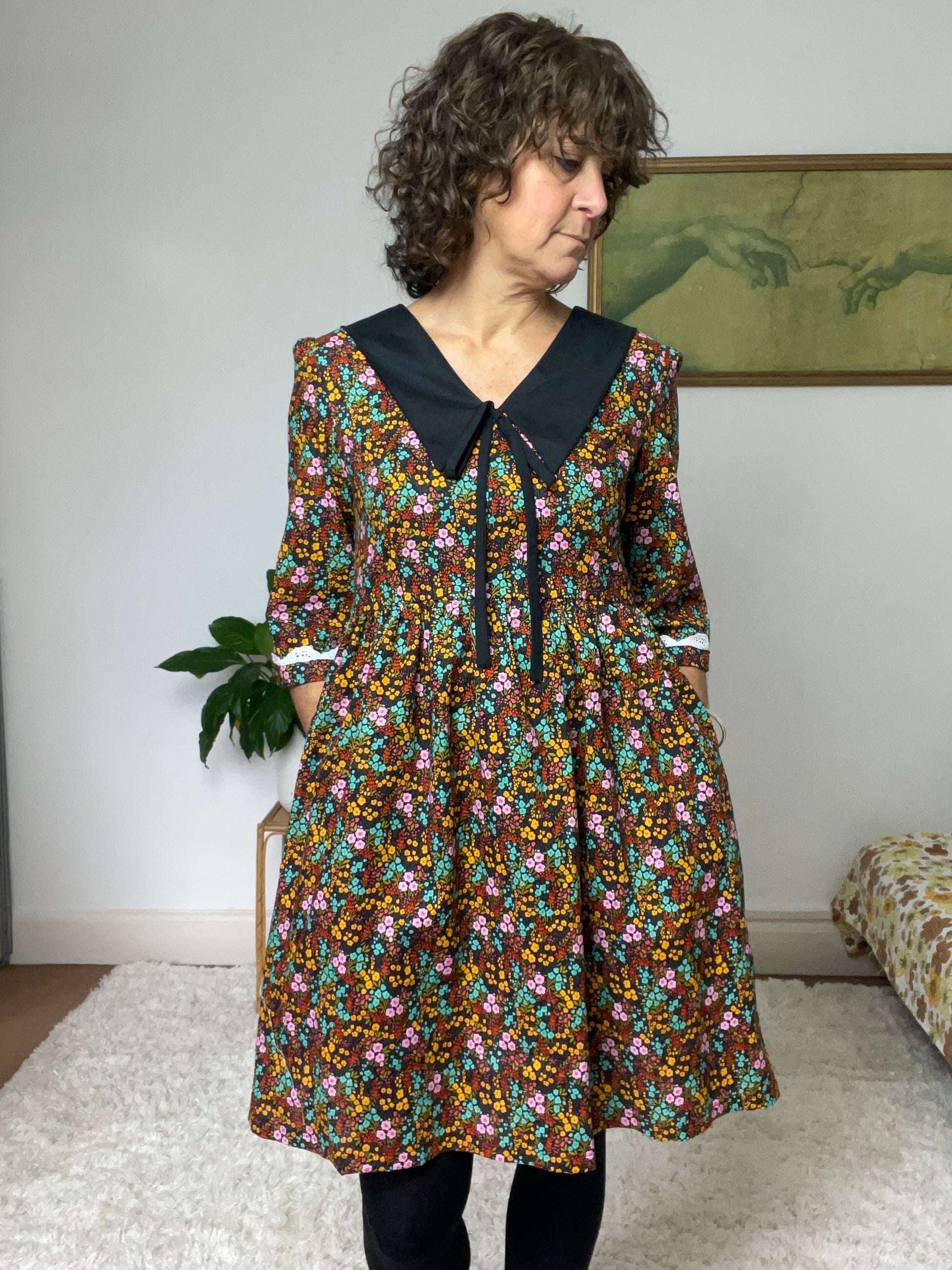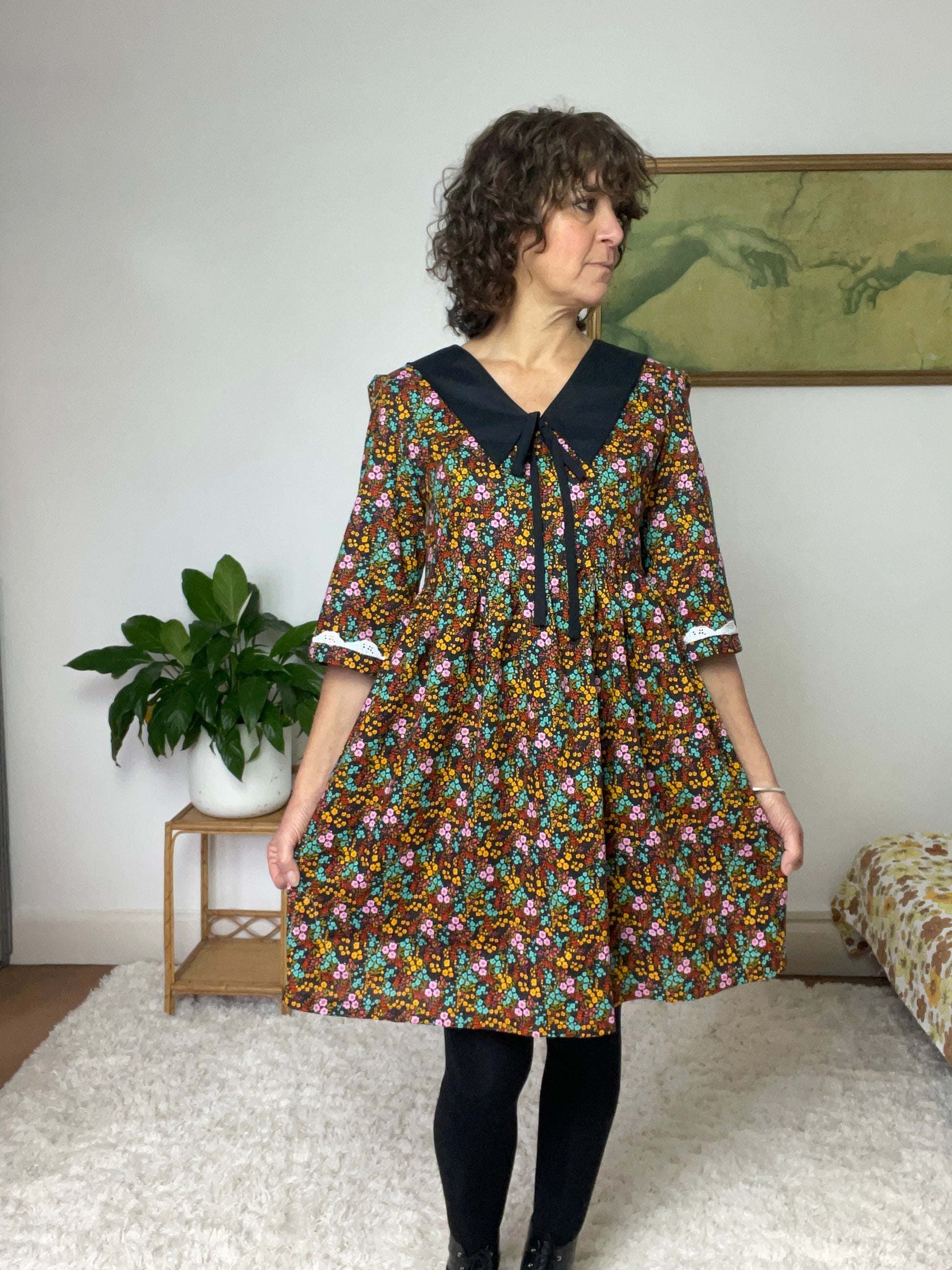 All fabrics are sourced by us and are mainly preloved or vintage as it's important to us to keep Lofty Frocks as sustainable as possible and not to create a negative impact on landfill.