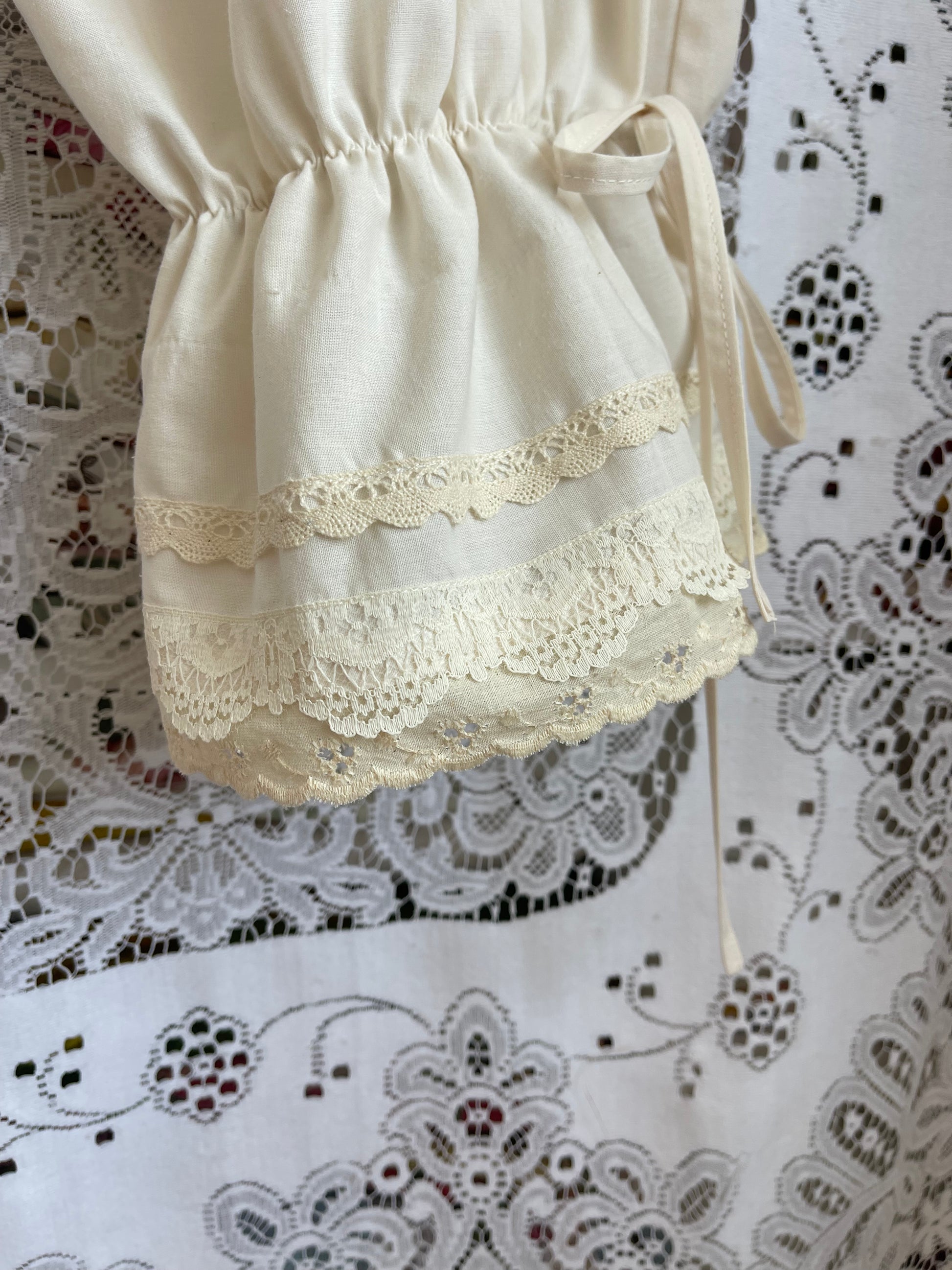 - High waisted bloomers with lace trims, elastic ruffles and elastic waist