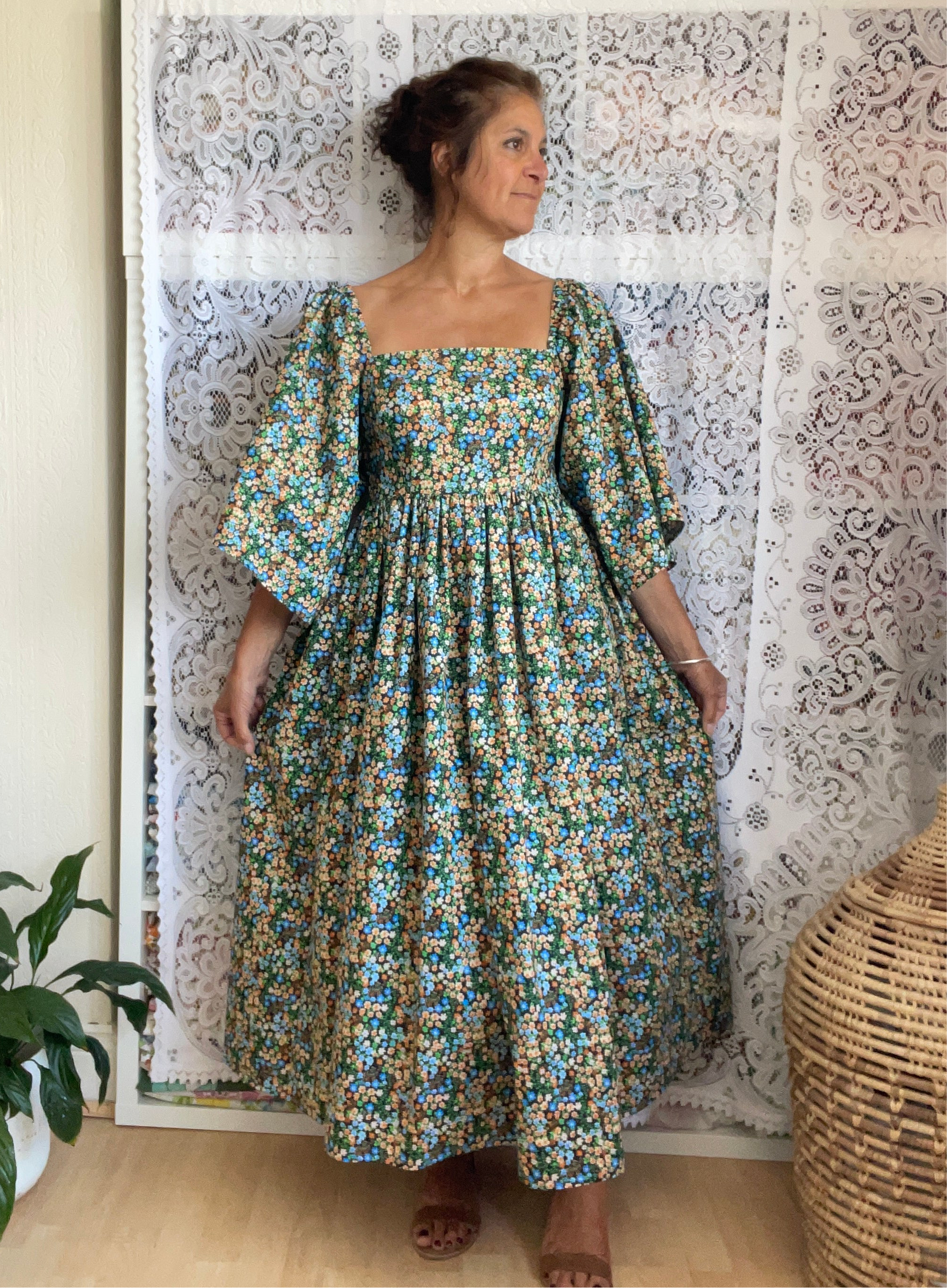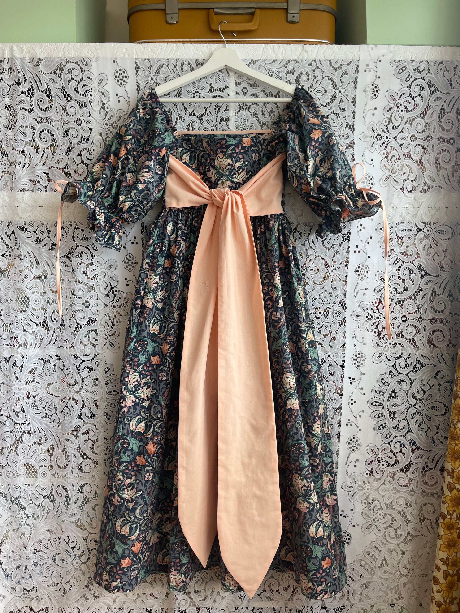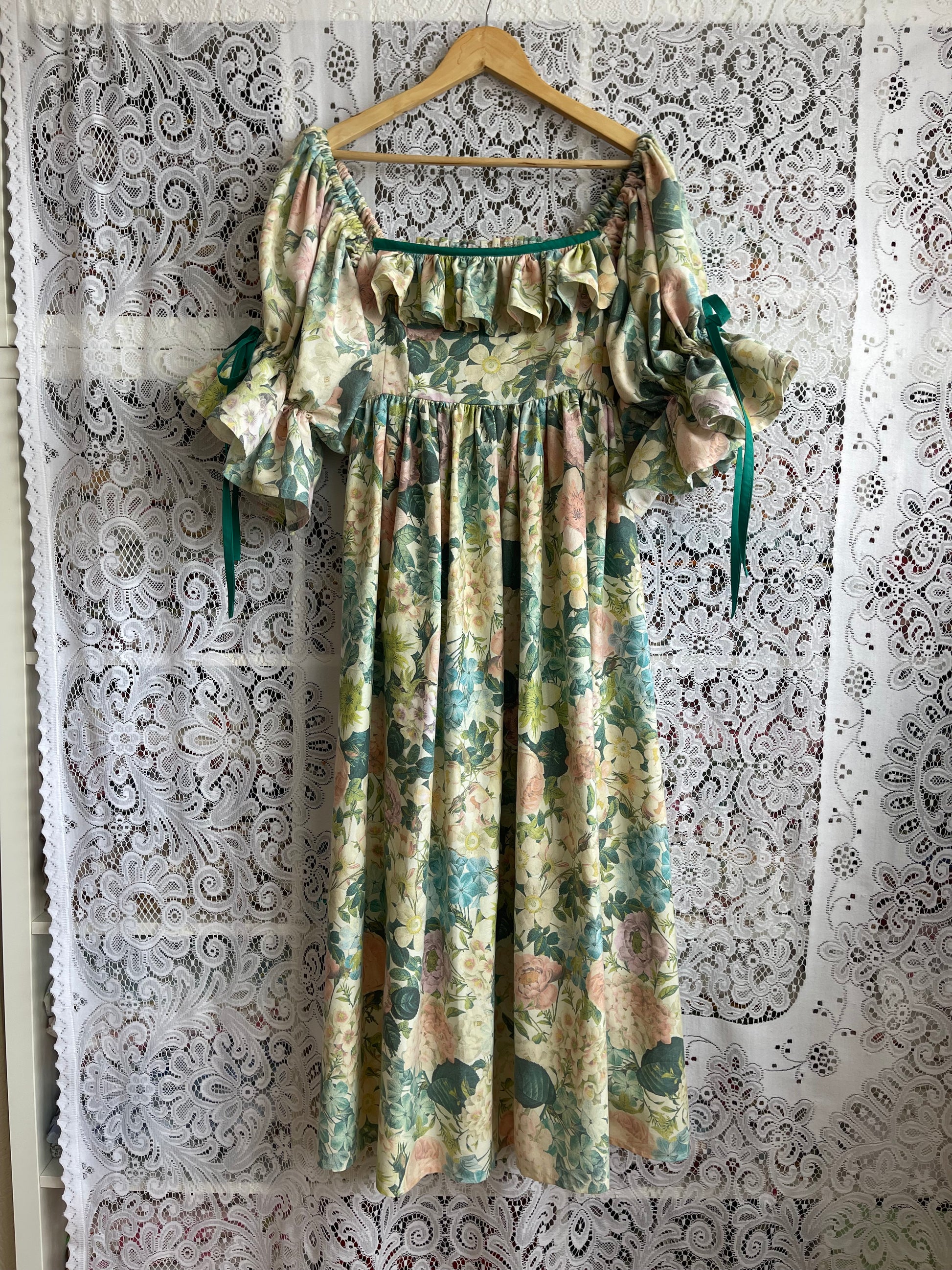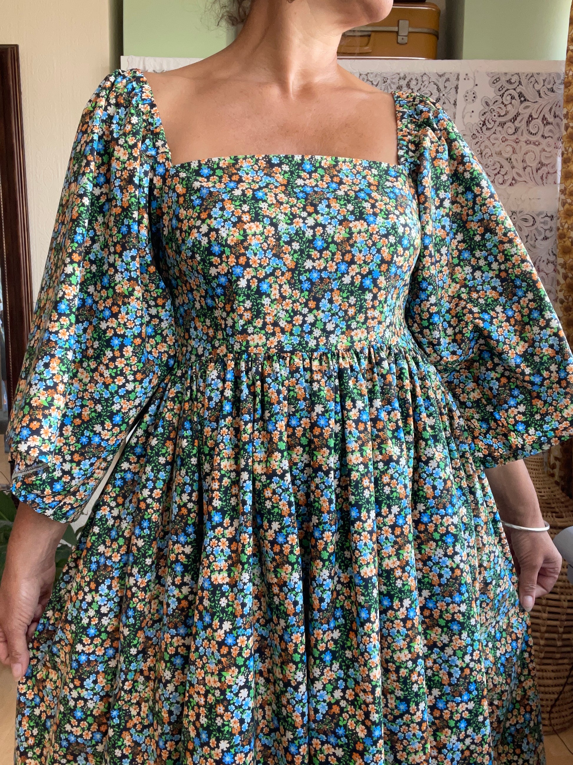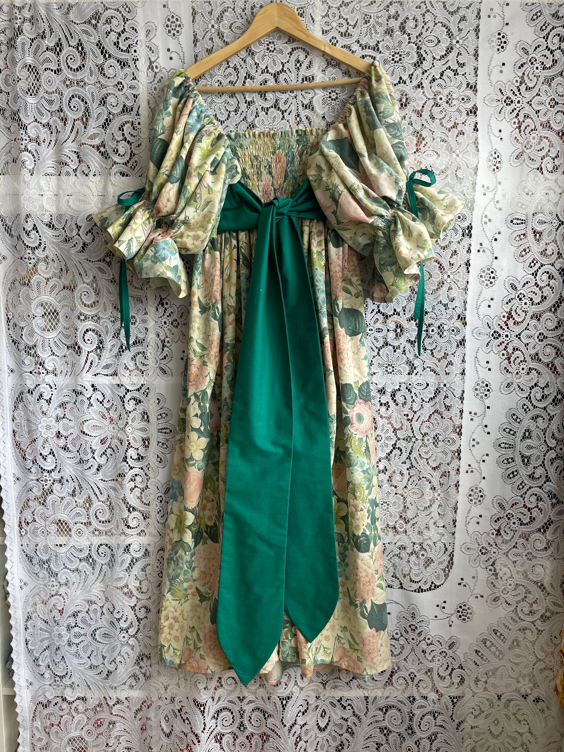 All fabrics are sourced by us and are mainly preloved or vintage as it's important to us to keep Lofty Frocks as sustainable as possible and not to create a negative impact on landfill.