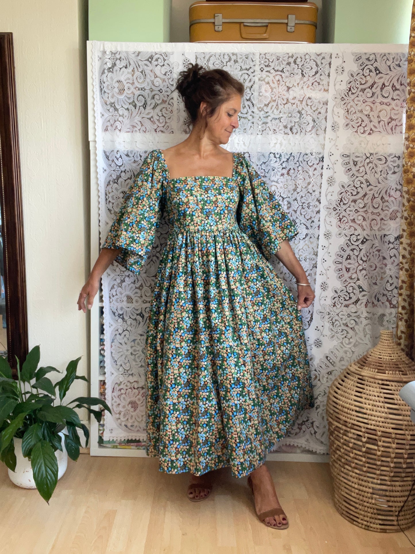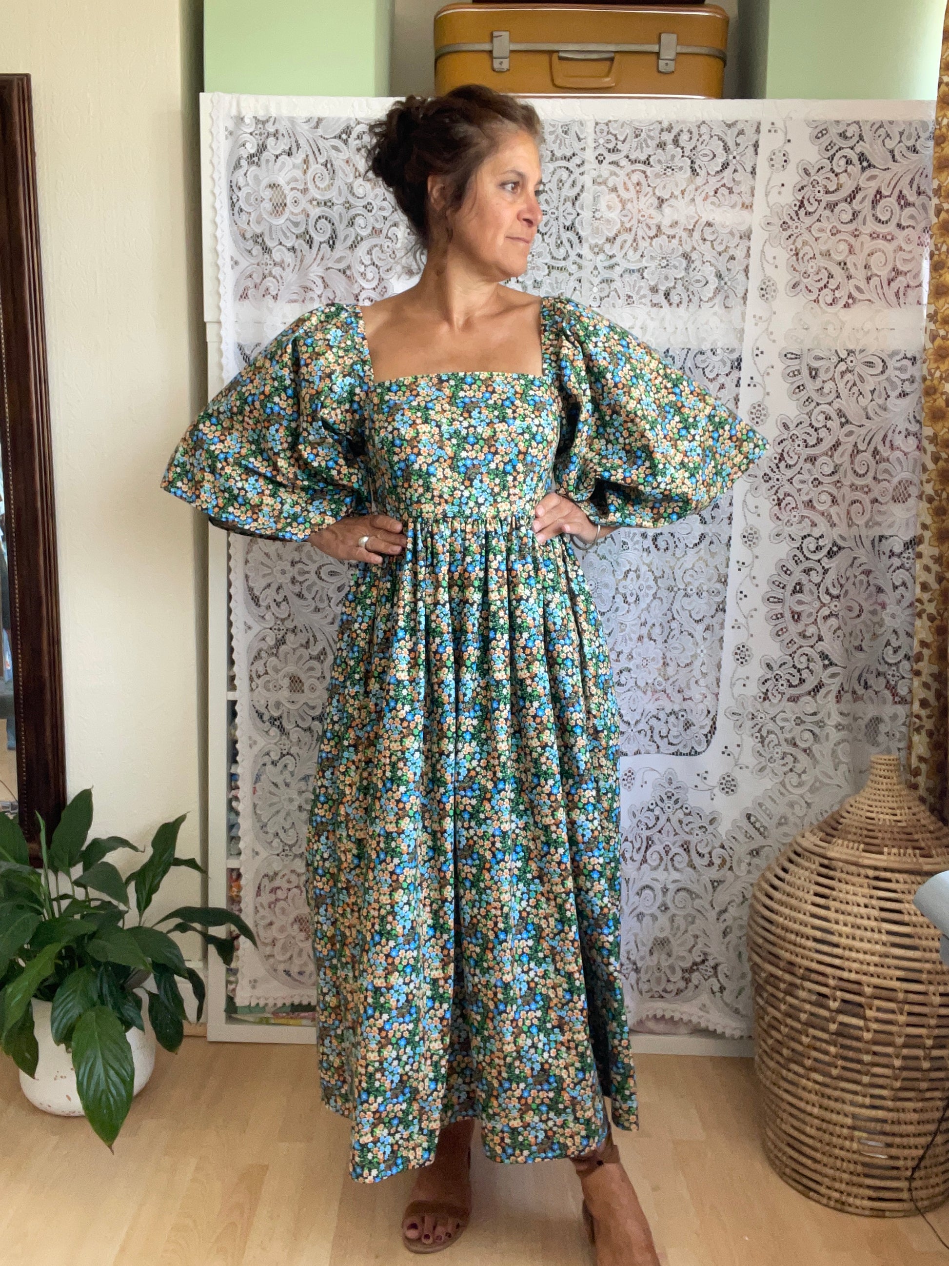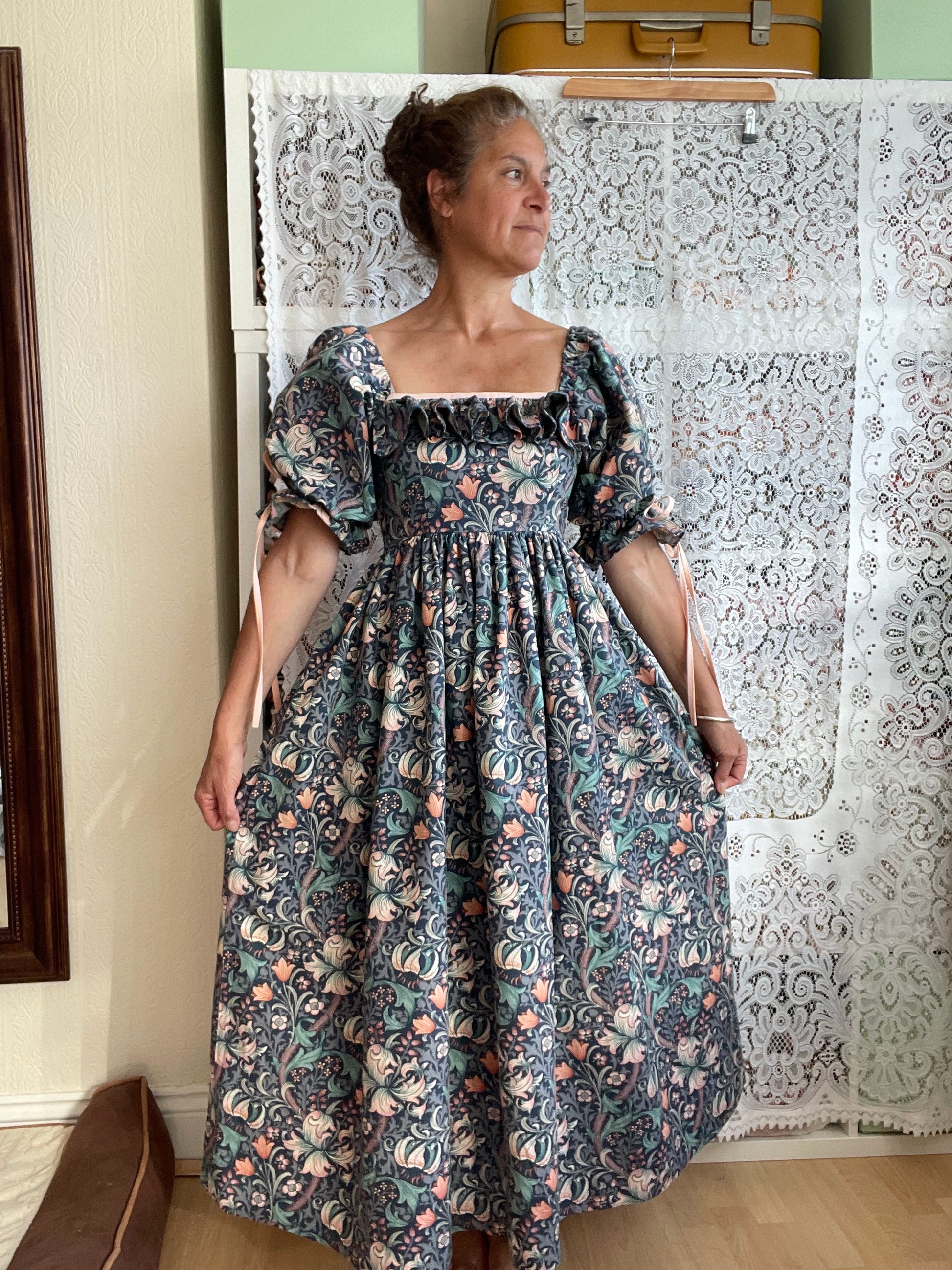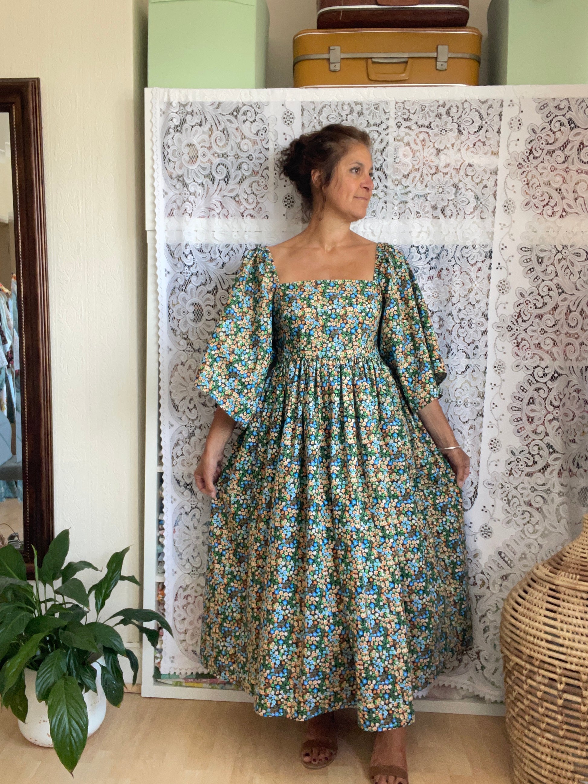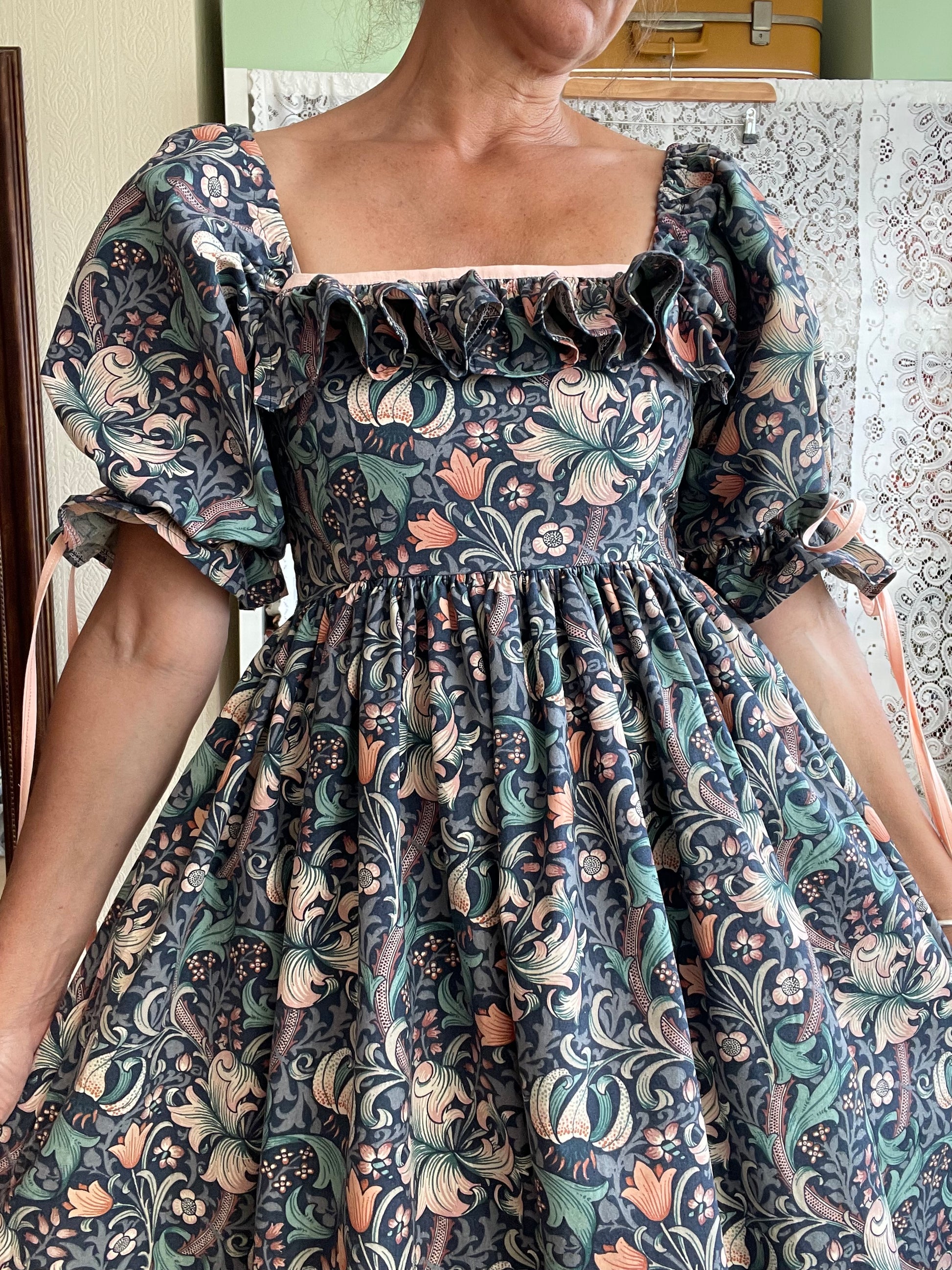 All fabrics are sourced by us and are mainly preloved or vintage as it's important to us to keep Lofty Frocks as sustainable as possible and not to create a negative impact on landfill.