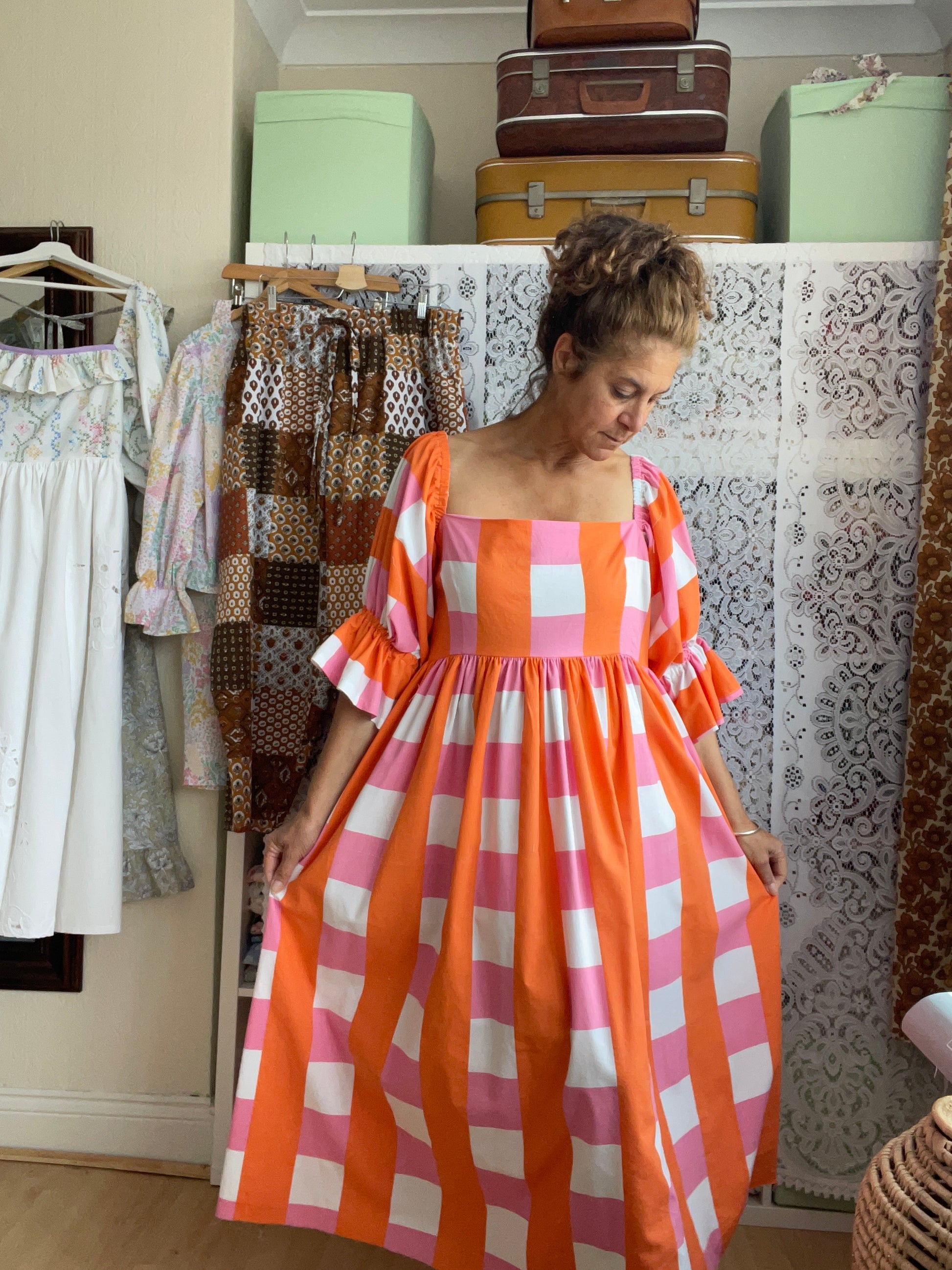 All fabrics are sourced by us and are mainly preloved or vintage as it's important to us to keep Lofty Frocks as sustainable as possible and not to create a negative impact on landfill.