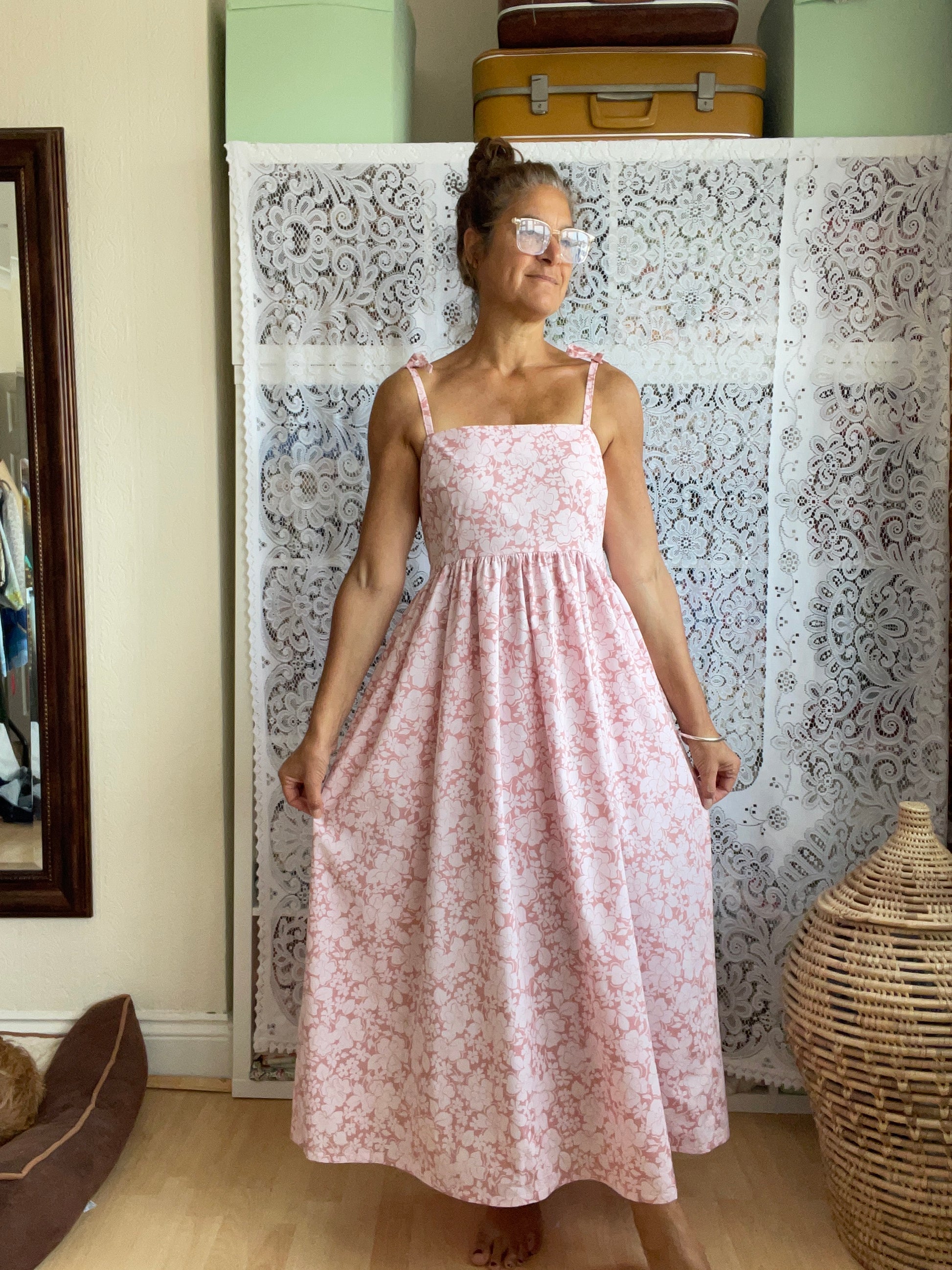 All fabrics are sourced by us and are mainly preloved or vintage as it's important to us to keep Lofty Frocks as sustainable as possible and not to create a negative impact on landfill.