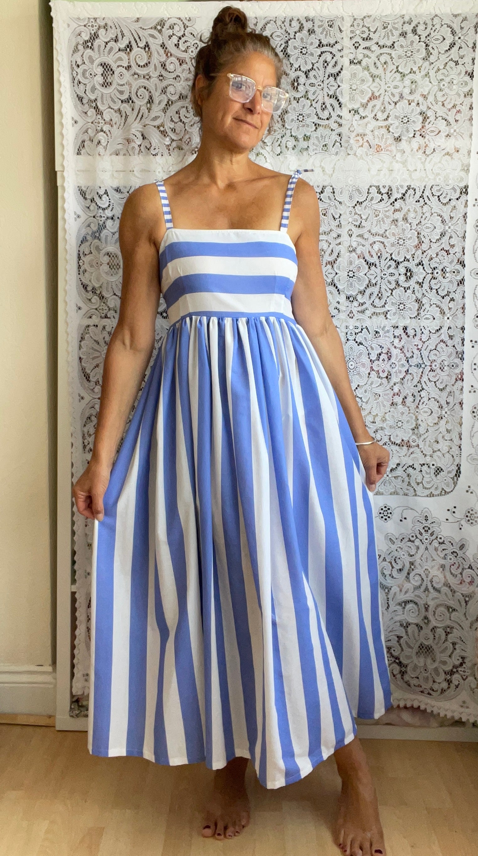 All fabrics are sourced by us and are mainly preloved or vintage as it's important to us to keep Lofty Frocks as sustainable as possible and not to create a negative impact on landfill.