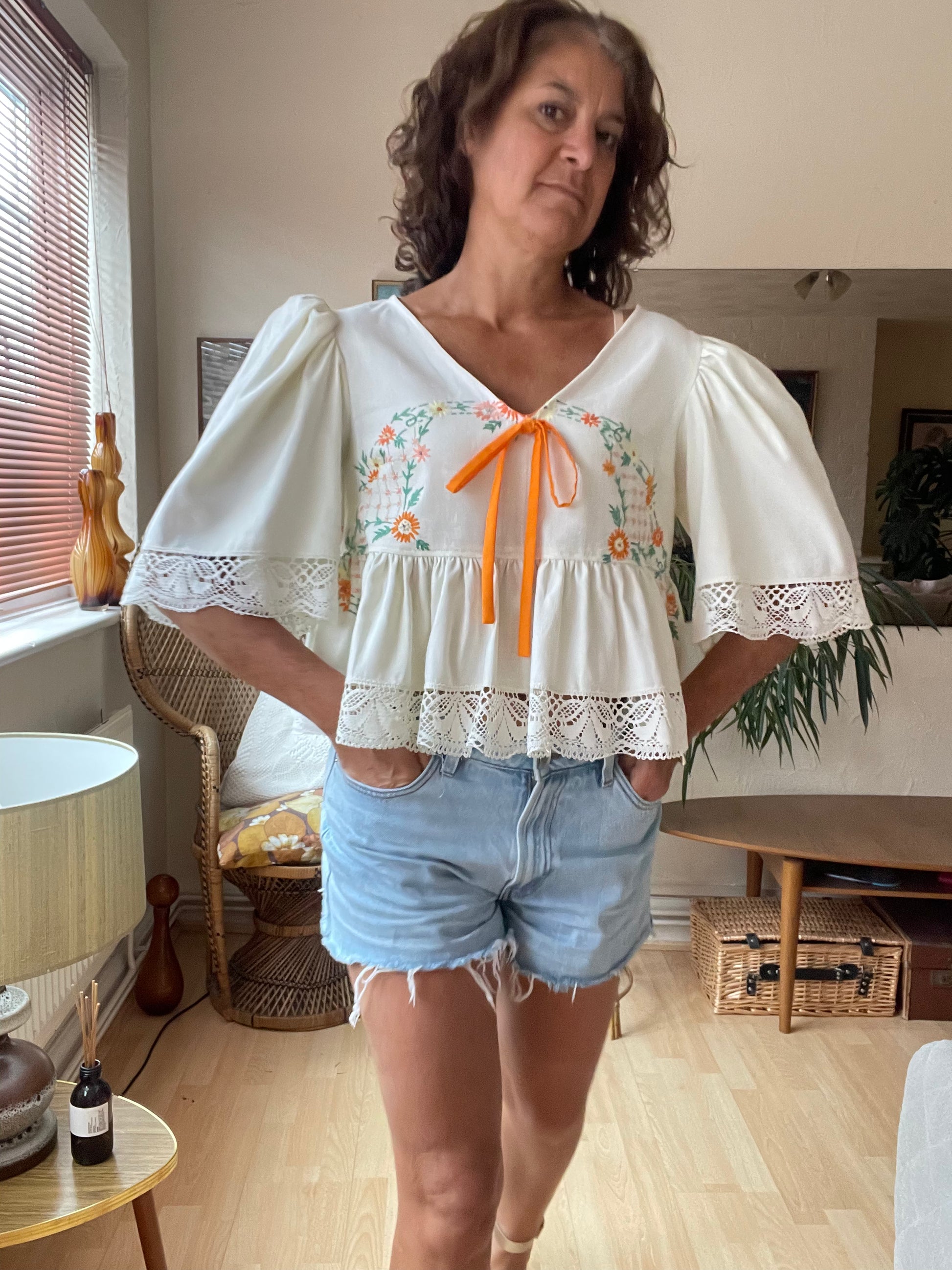 All fabrics are sourced by us and are mainly preloved or vintage as it's important to us to keep Lofty Frocks as sustainable as possible and not to create a negative impact on landfill.