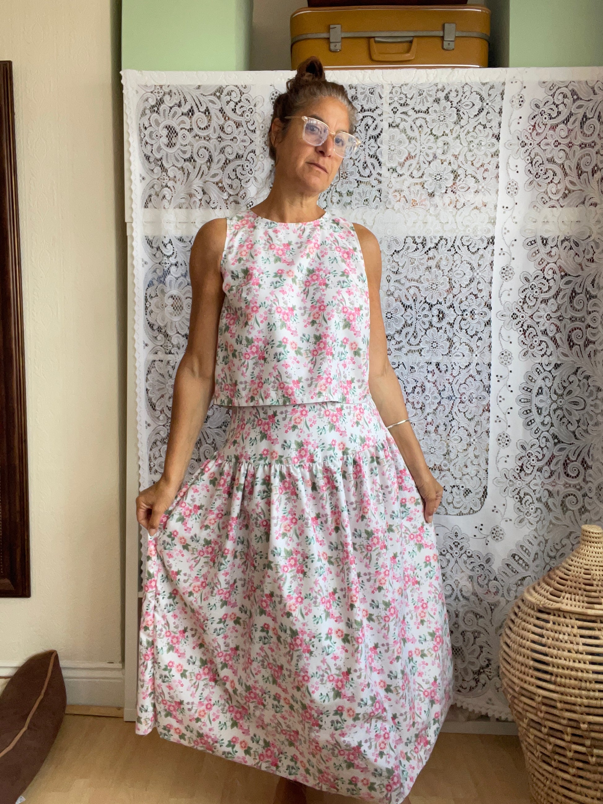 All fabrics are sourced by us and are mainly preloved or vintage as it's important to us to keep Lofty Frocks as sustainable as possible and not to create a negative impact on landfill.