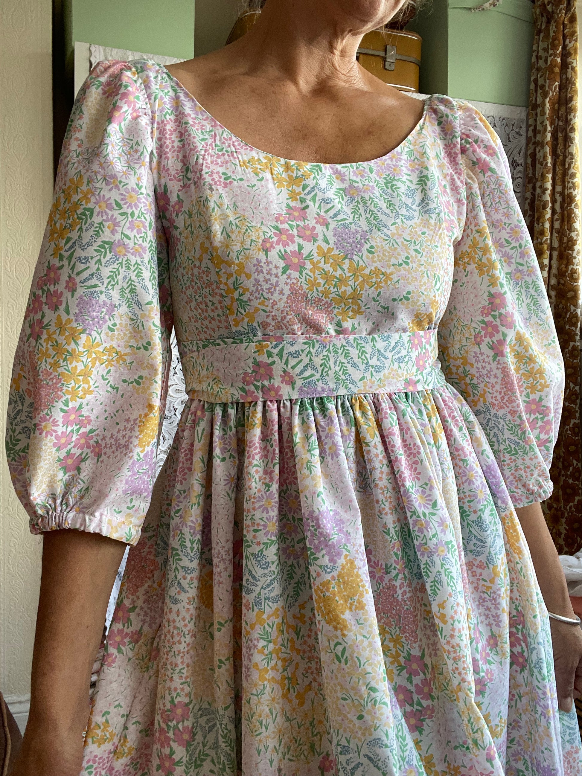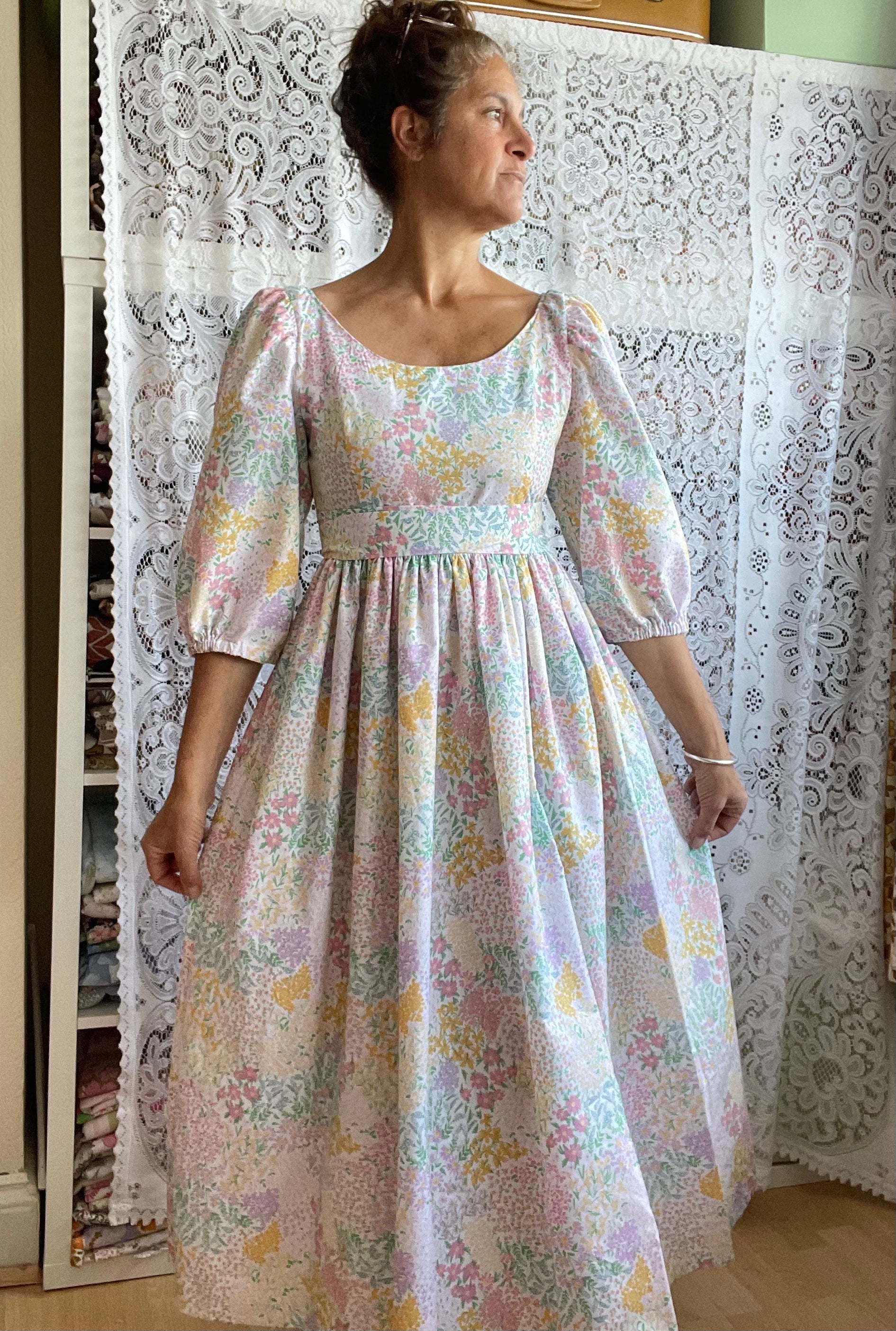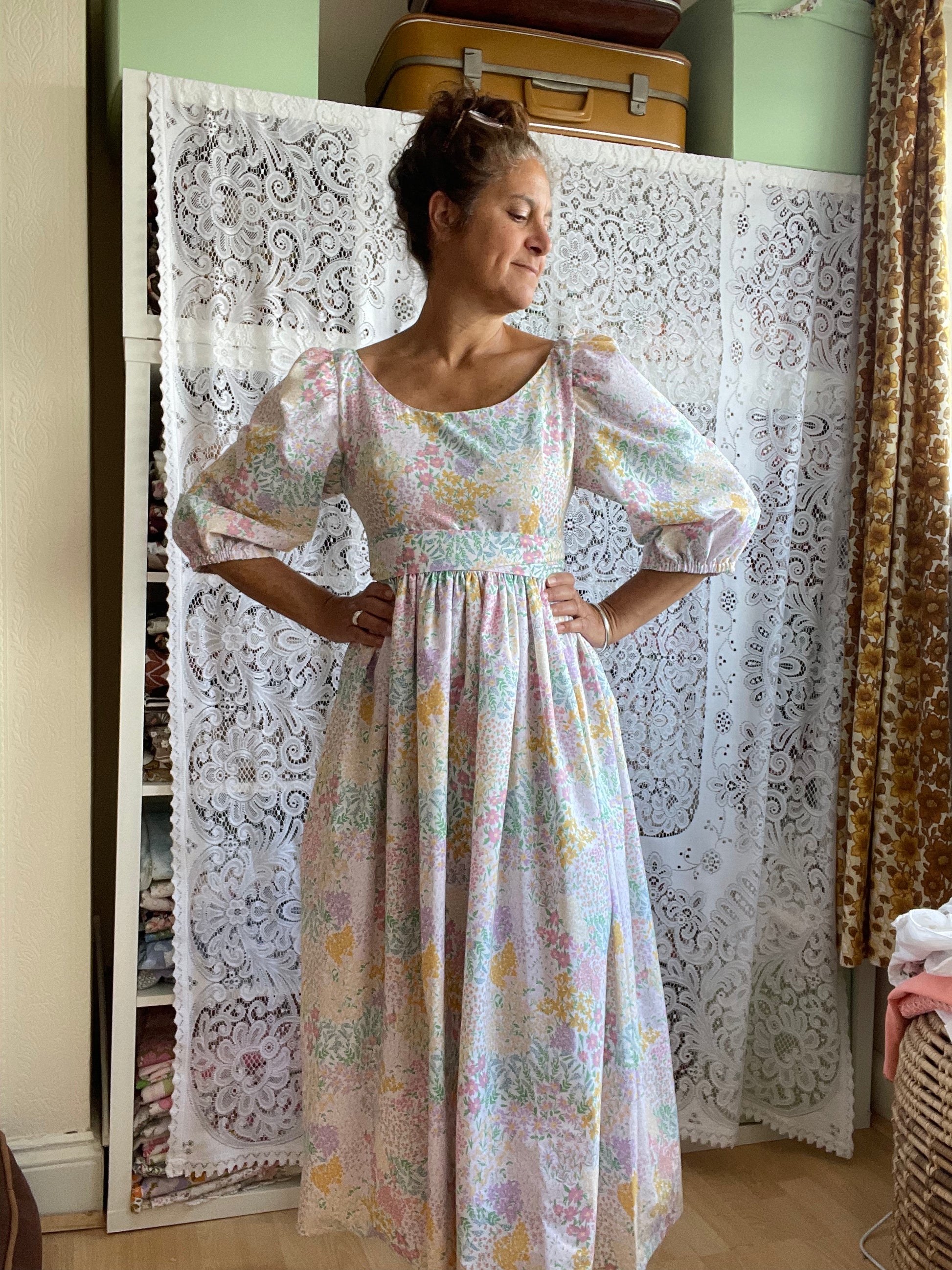 All fabrics are sourced by us and are mainly preloved or vintage as it's important to us to keep Lofty Frocks as sustainable as possible and not to create a negative impact on landfill.