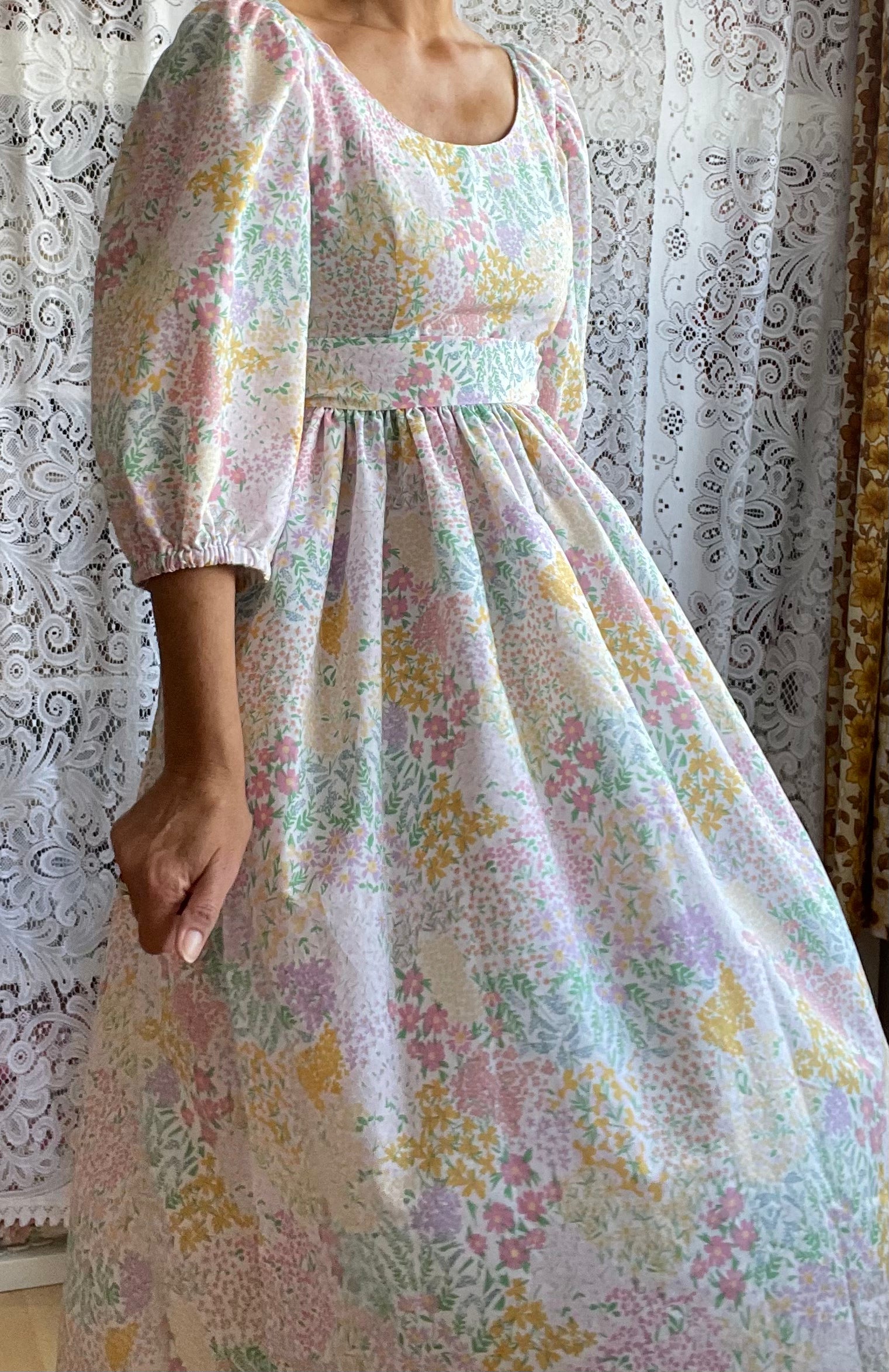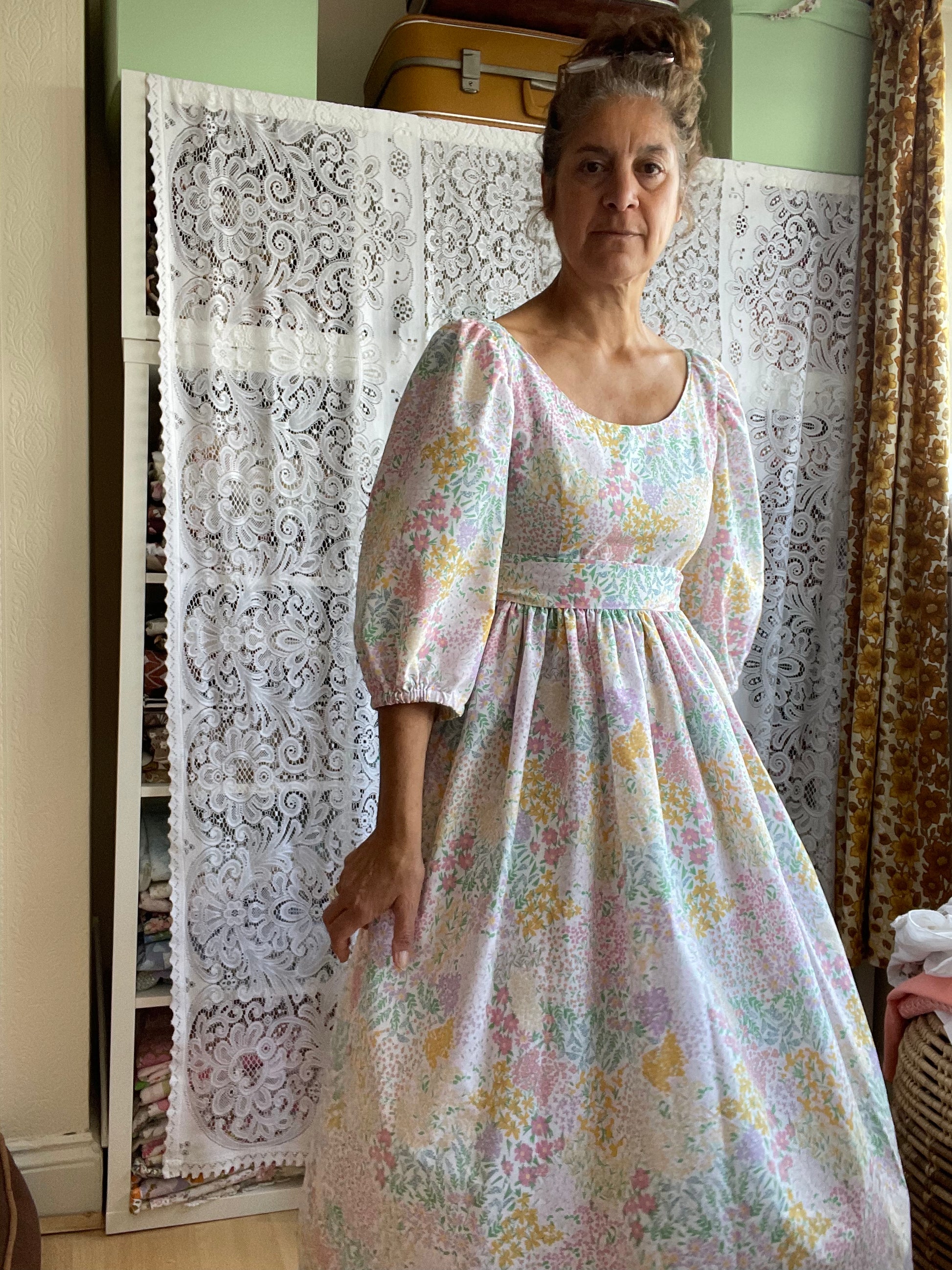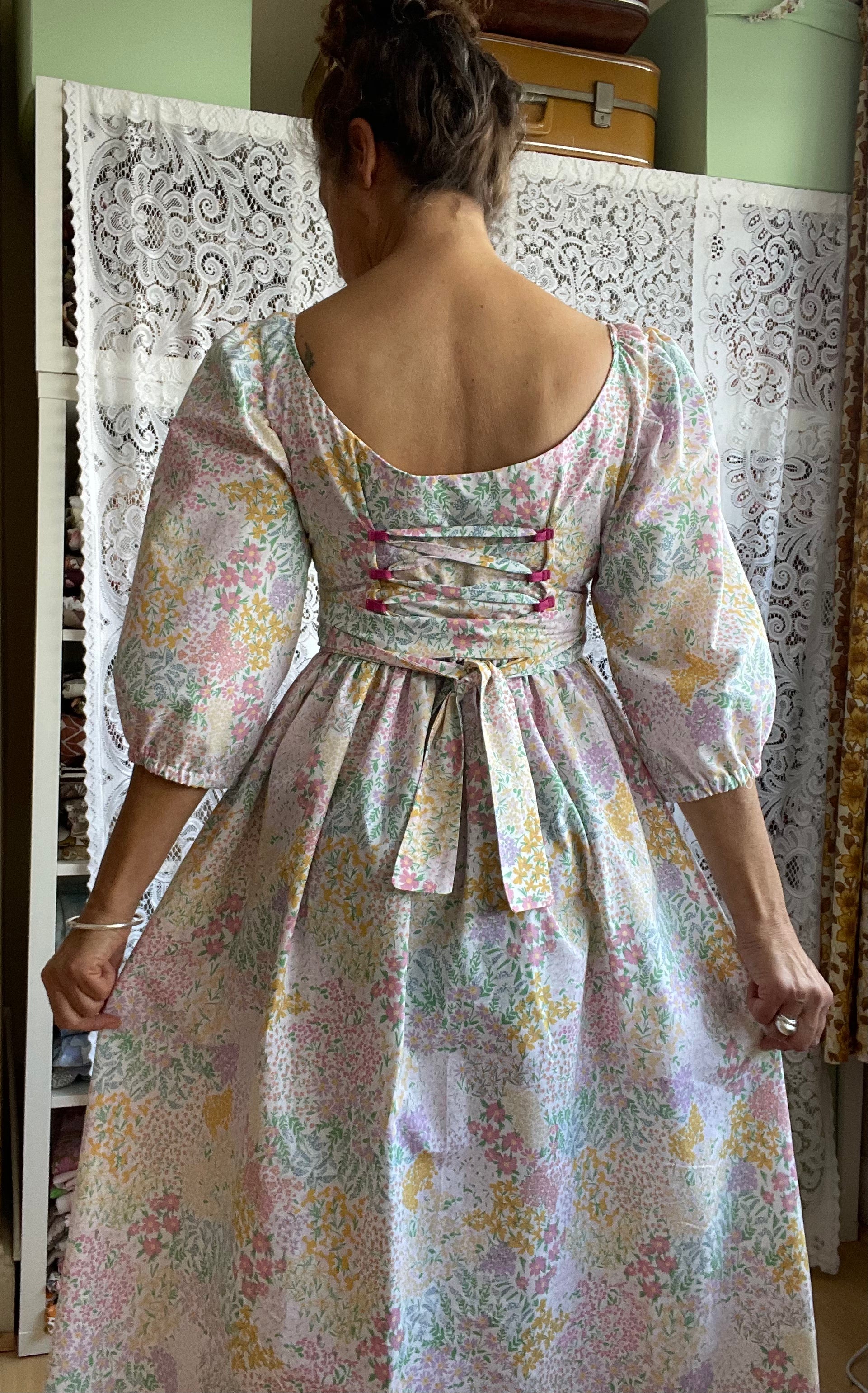 All fabrics are sourced by us and are mainly preloved or vintage as it's important to us to keep Lofty Frocks as sustainable as possible and not to create a negative impact on landfill.